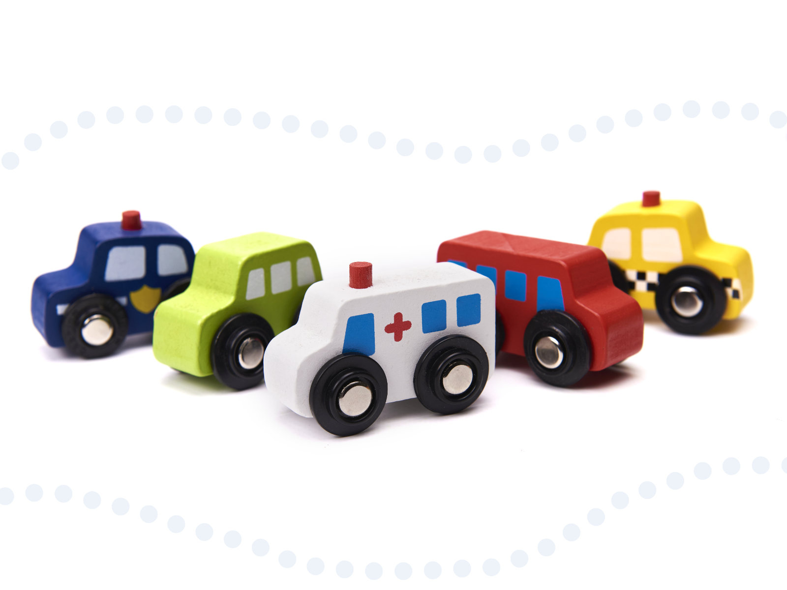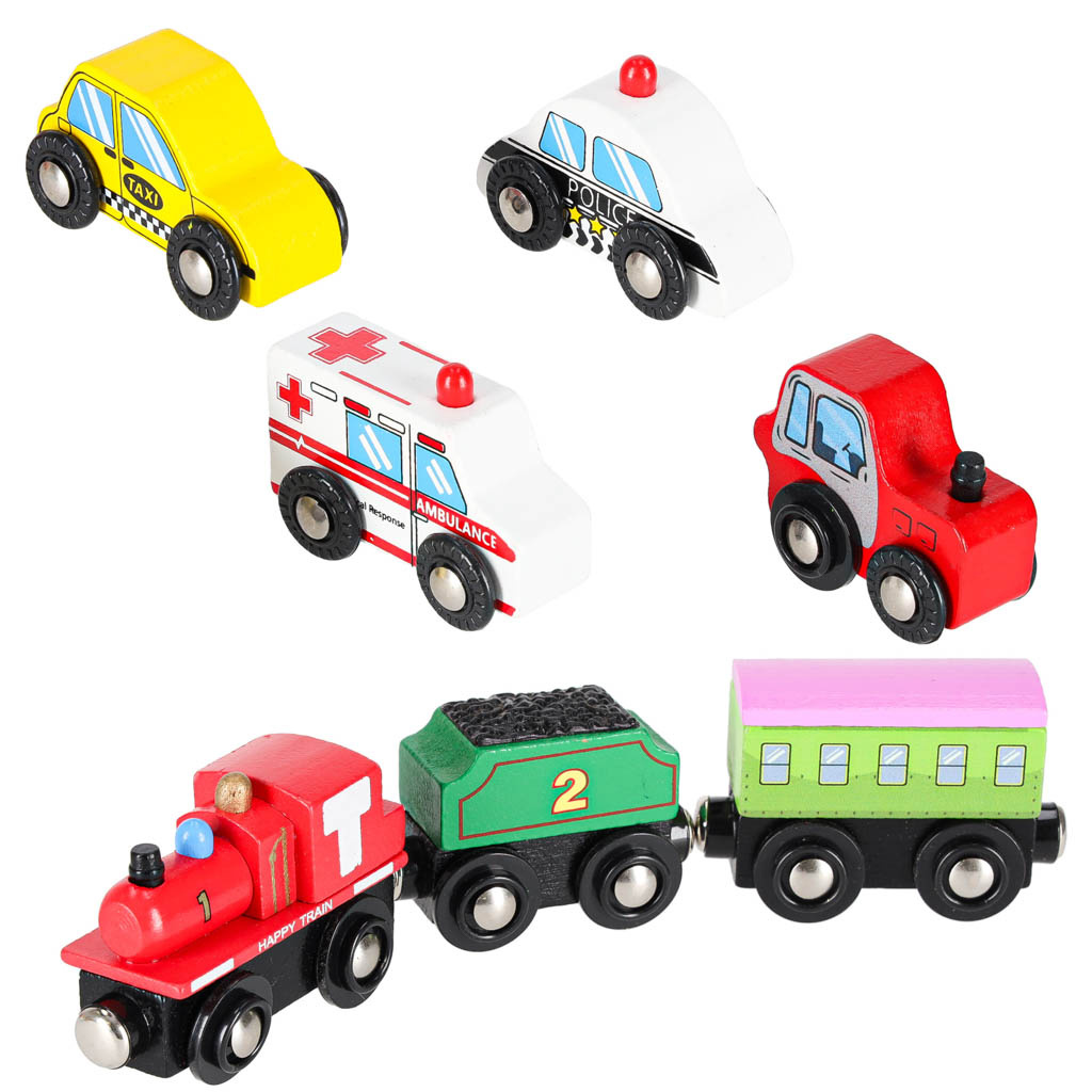 8 vehicule, inclusiv m.in. locomotivă cu două vagoane, ambulanță, mașină de poliție