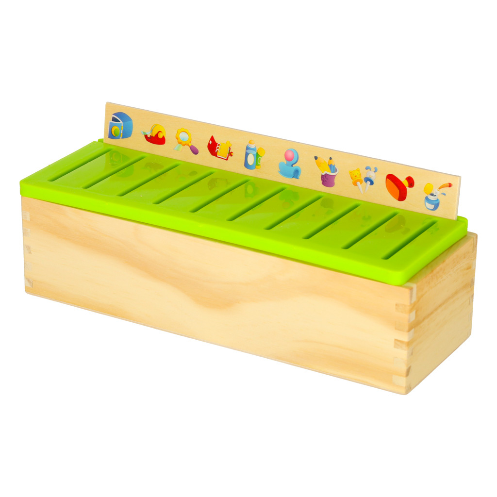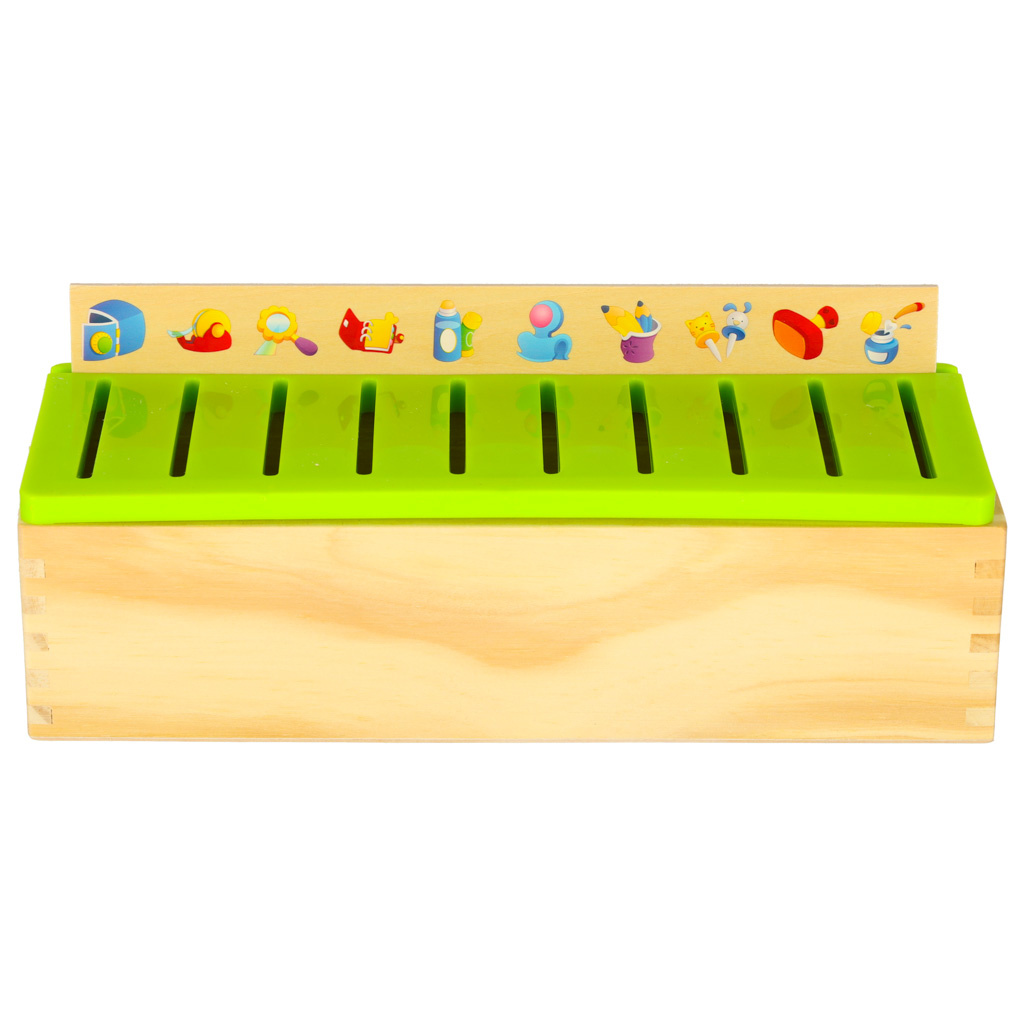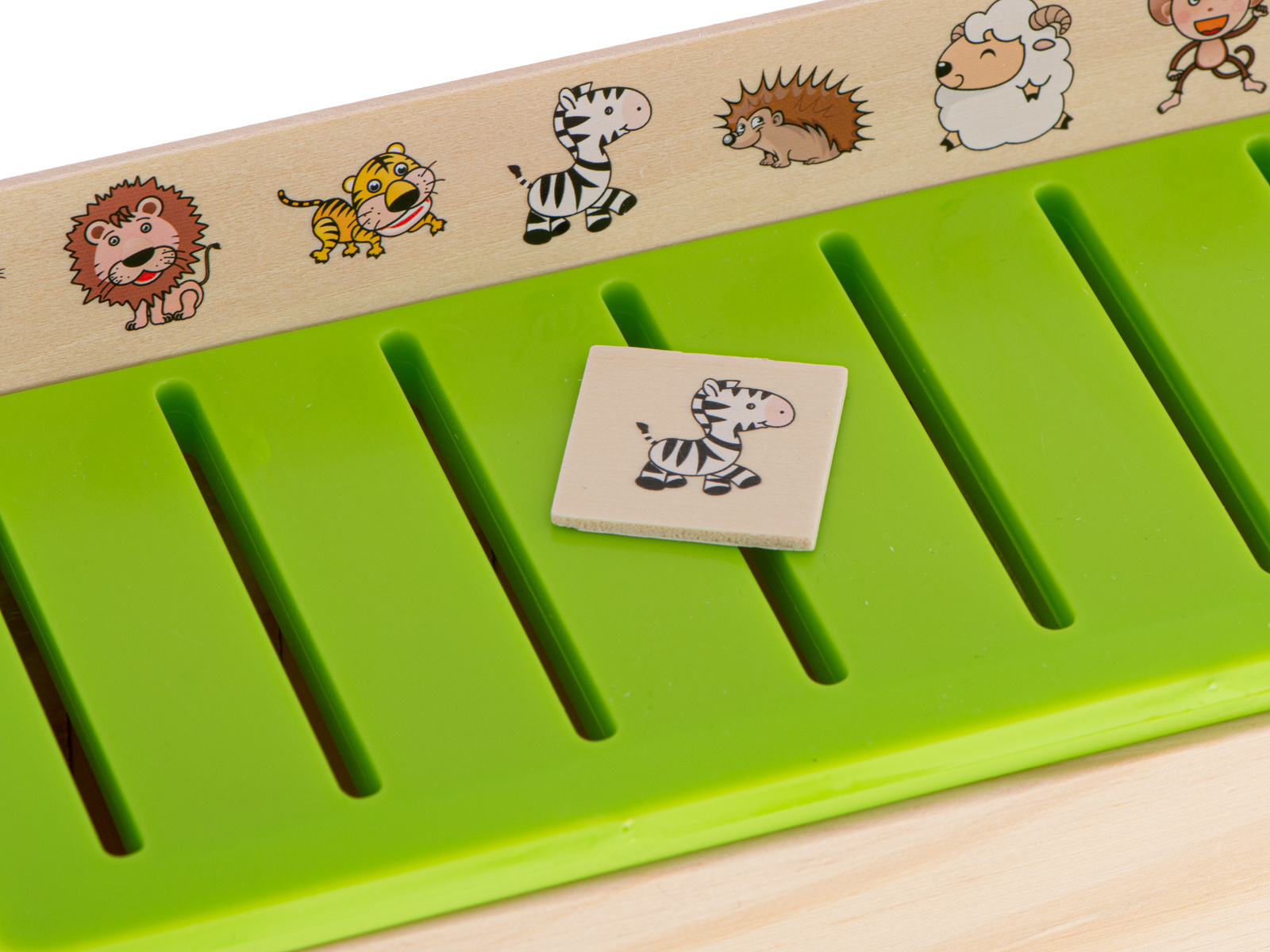 Un puzzle educativ fantastic pentru cei mici, care nu doar că îi va distra, dar va susține și dezvoltarea corectă a copilului dumneavoastră. Jocul constă în aruncarea aceleiași imagini care se află pe placa mare de lemn deasupra deschiderii, în deschiderea corespunzătoare.