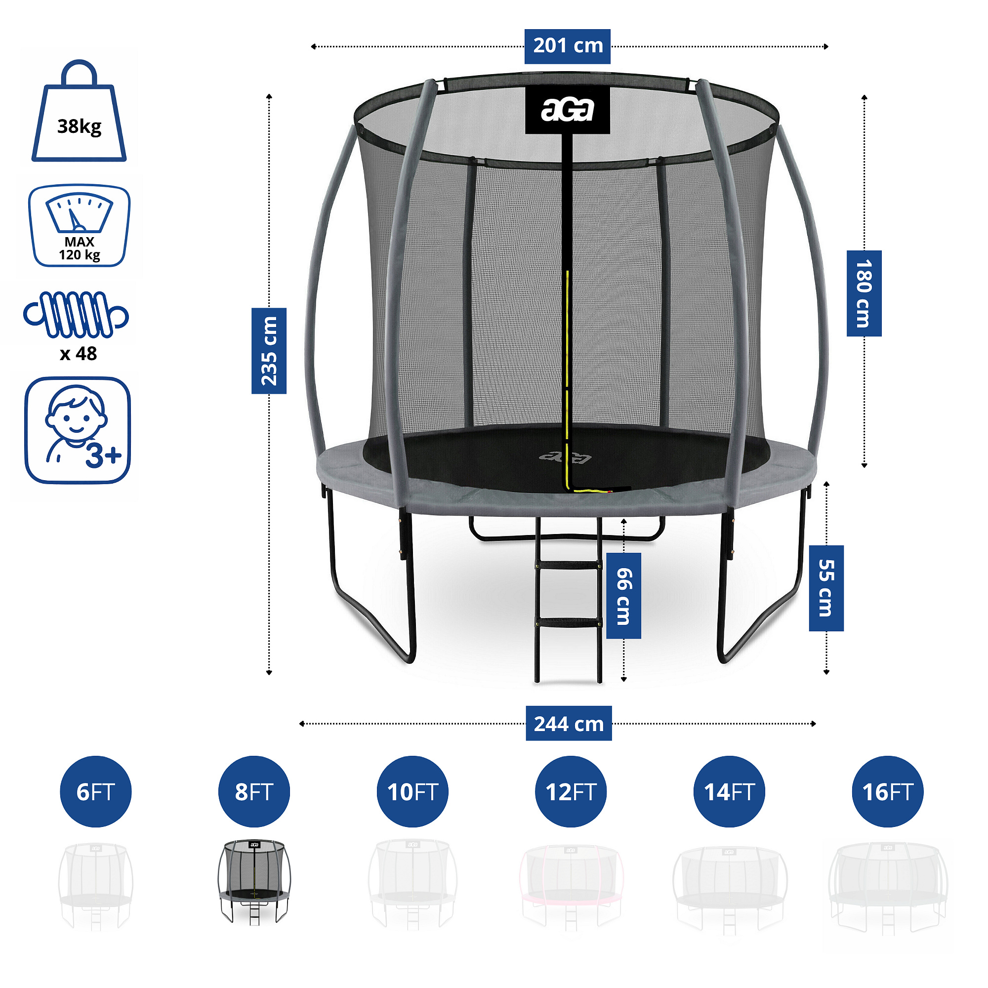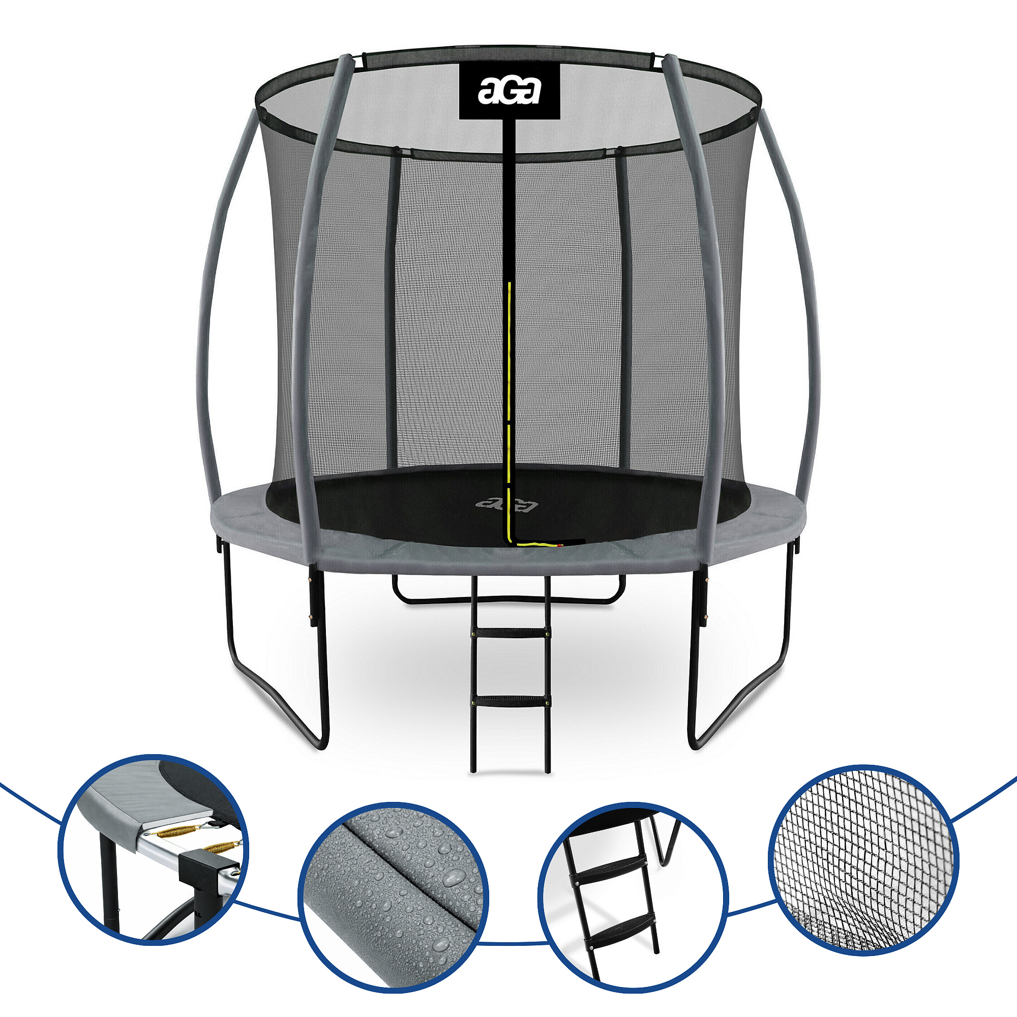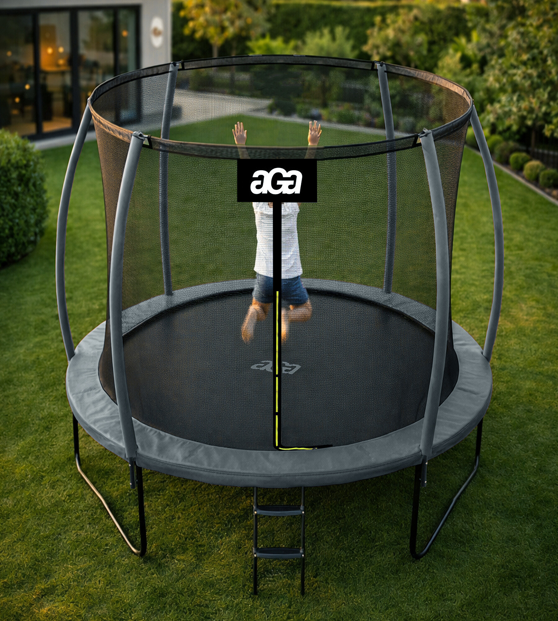 Trambulina Aga cu plasă de protecție interioară a fost special concepută și fabricată pentru distracția sigură a copiilor și adulților.