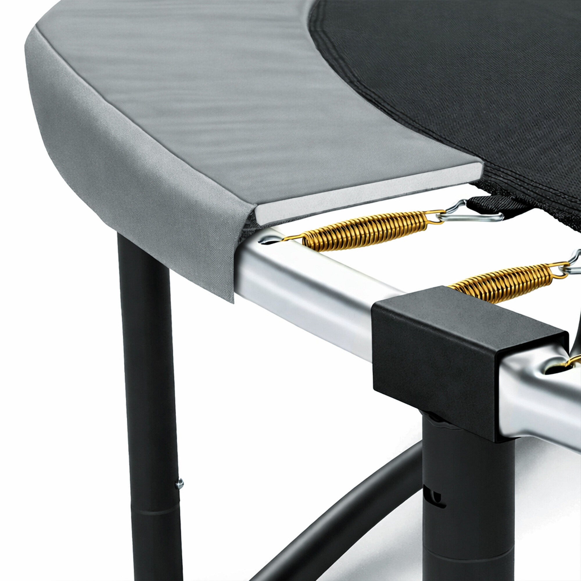Construcția circulară Hi-Ten întărită a trambulinei este realizată din oțel galvanizat de calitate, cu o rezistență excelentă la coroziune, iar picioarele au un finisaj cu vopsea pulbere.