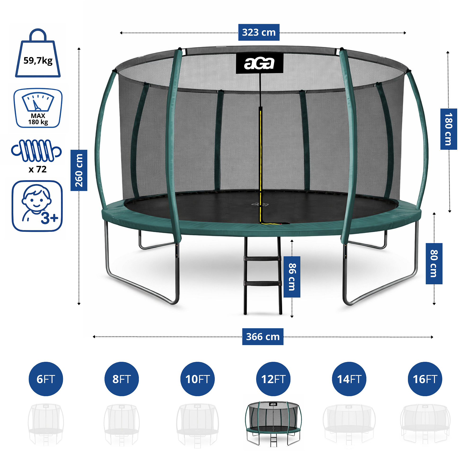- Diametrul trambulinei: 366 cm (12 ft)