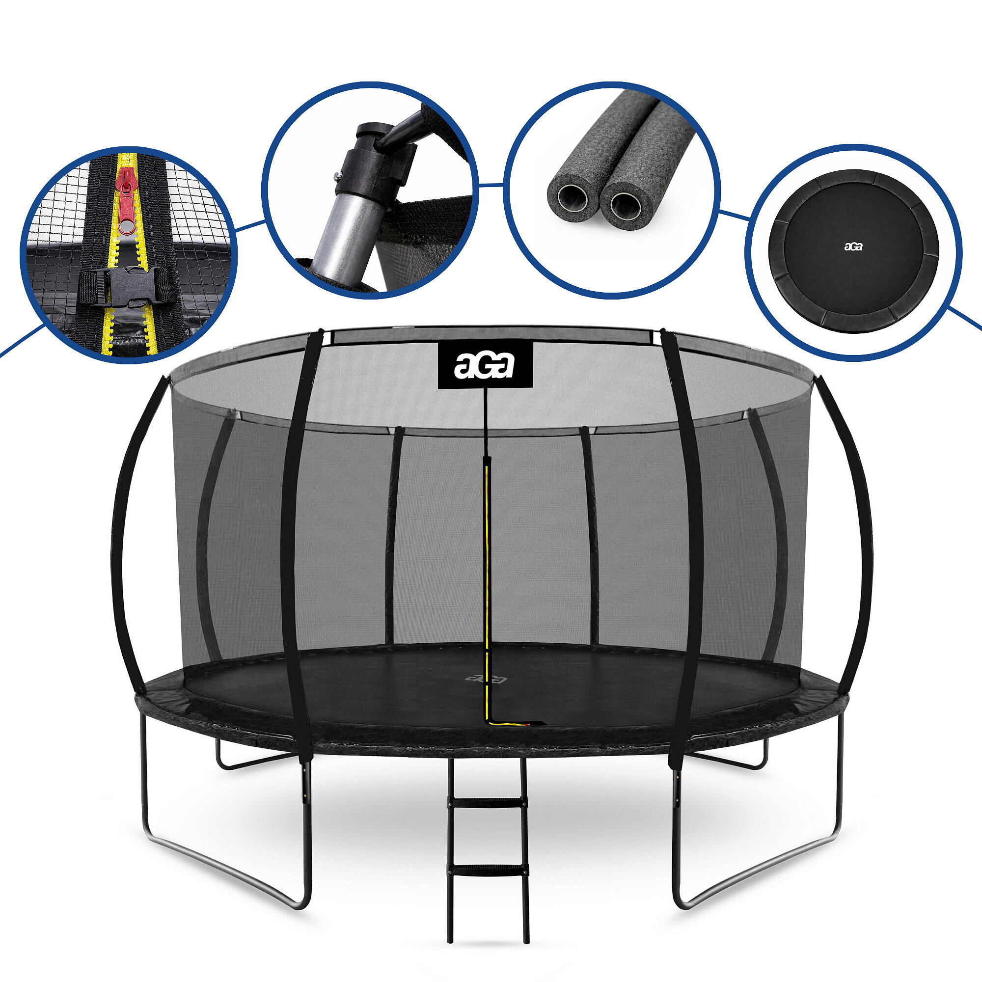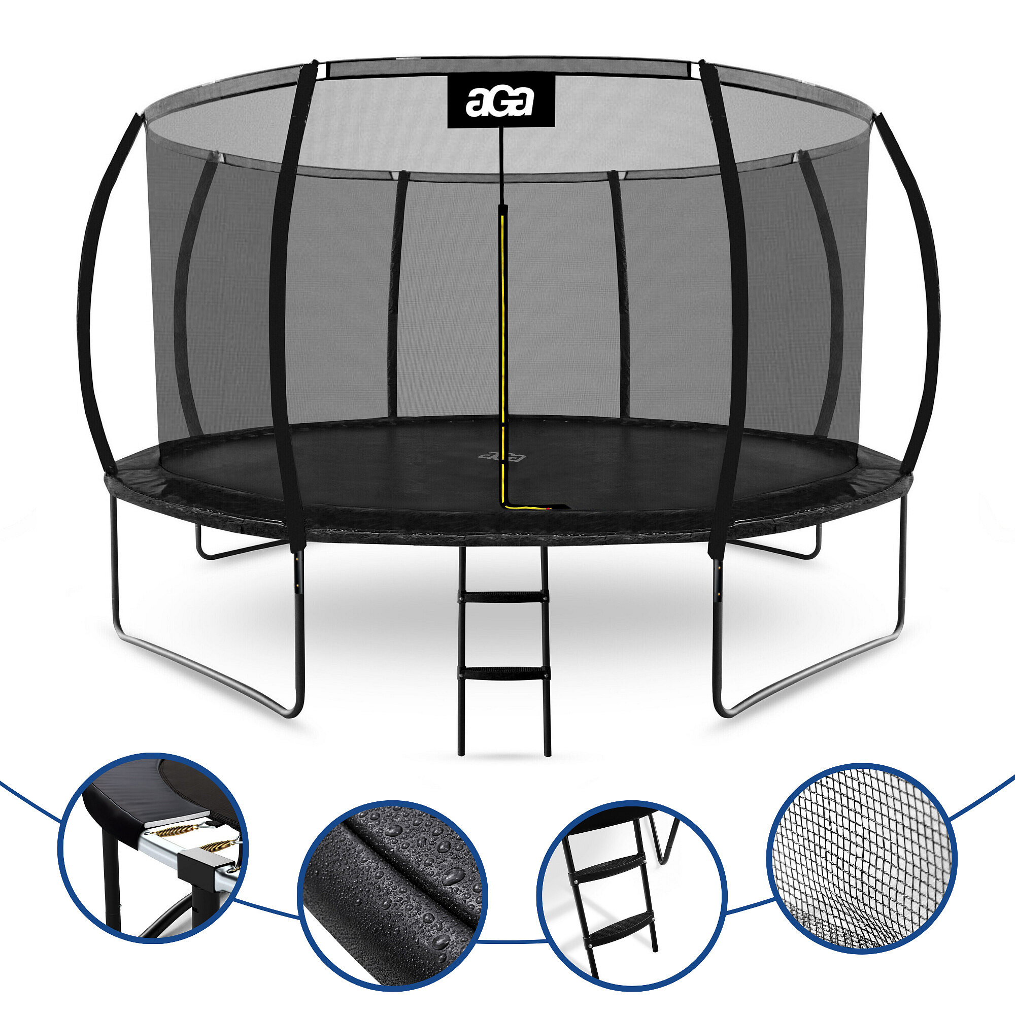 Trambulina Aga cu plasă de protecție interioară a fost special concepută și fabricată pentru distracția sigură a copiilor și adulților.