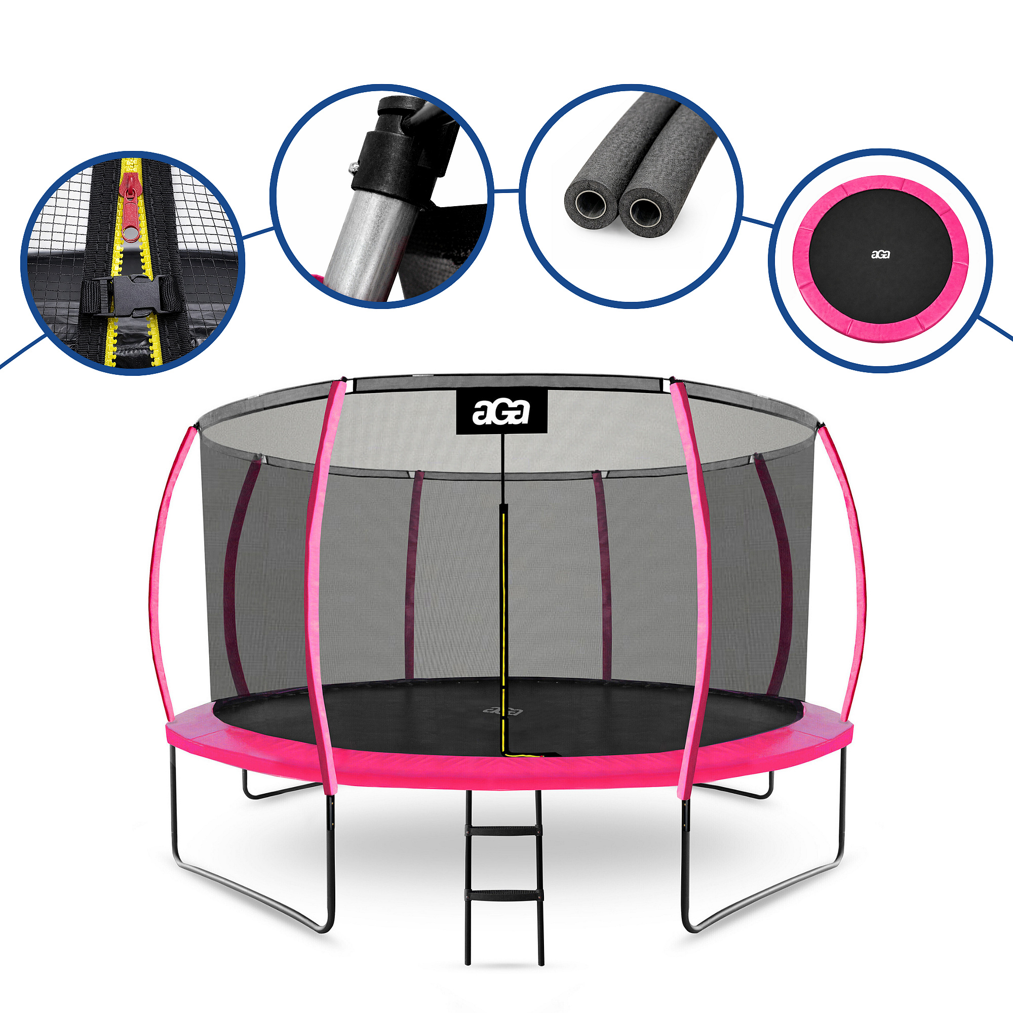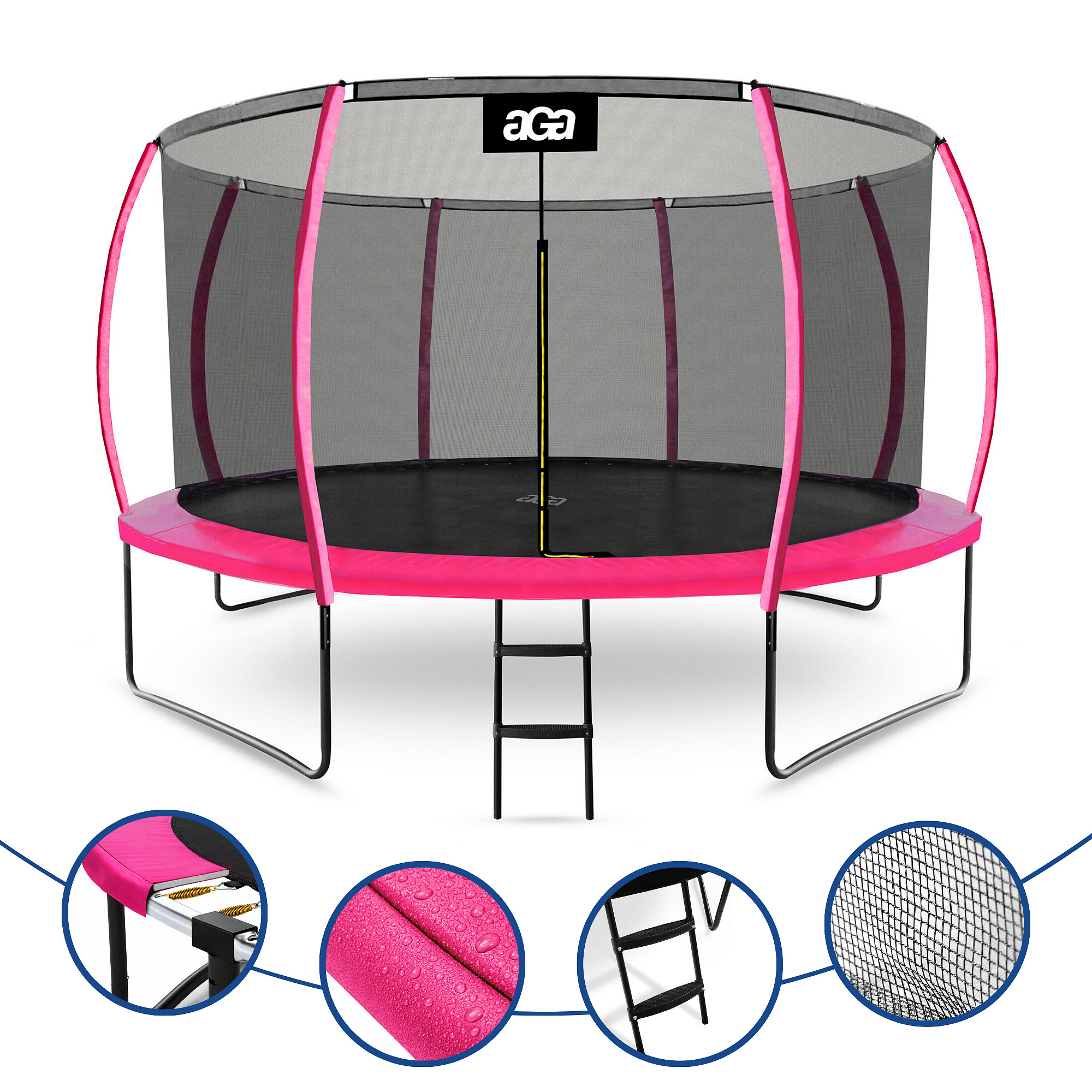 Trambulina Aga cu plasă de protecție interioară a fost special concepută și fabricată pentru distracția sigură a copiilor și adulților.