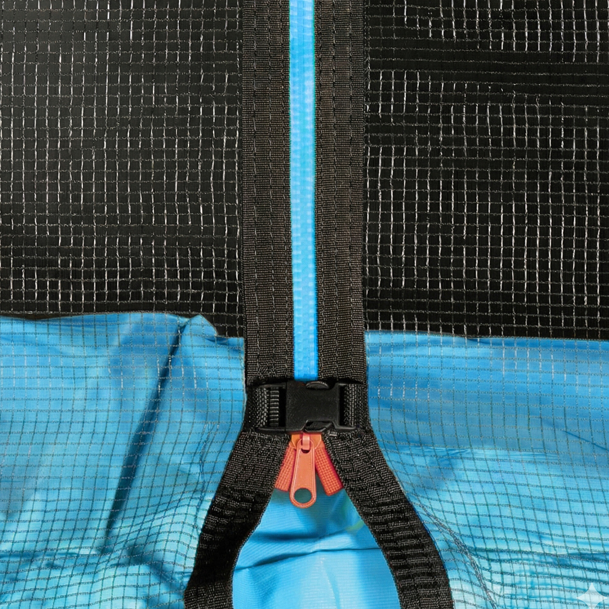 Plasa de protecție superioară are o deschidere prevăzută cu fermoar și asigurată cu o siguranță împotriva deschiderii accidentale.