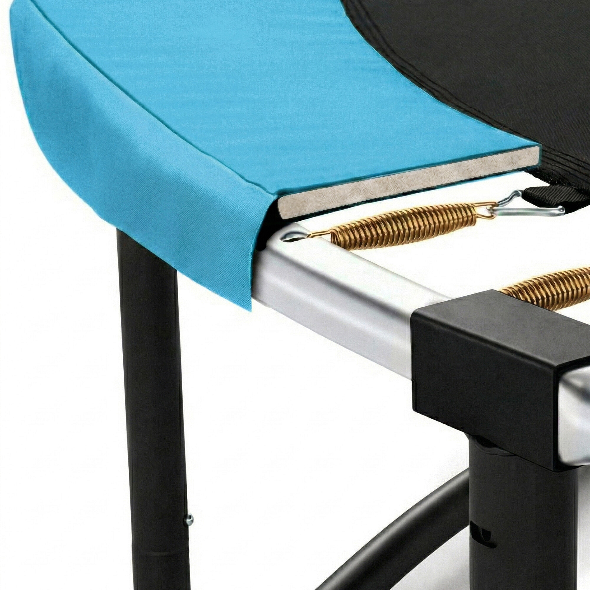 Siguranța maximă posibilă este asigurată de o centură perimetrală căptușită (acoperire pentru arcuri), care acoperă arcurile pe întregul perimetru al trambulinei.