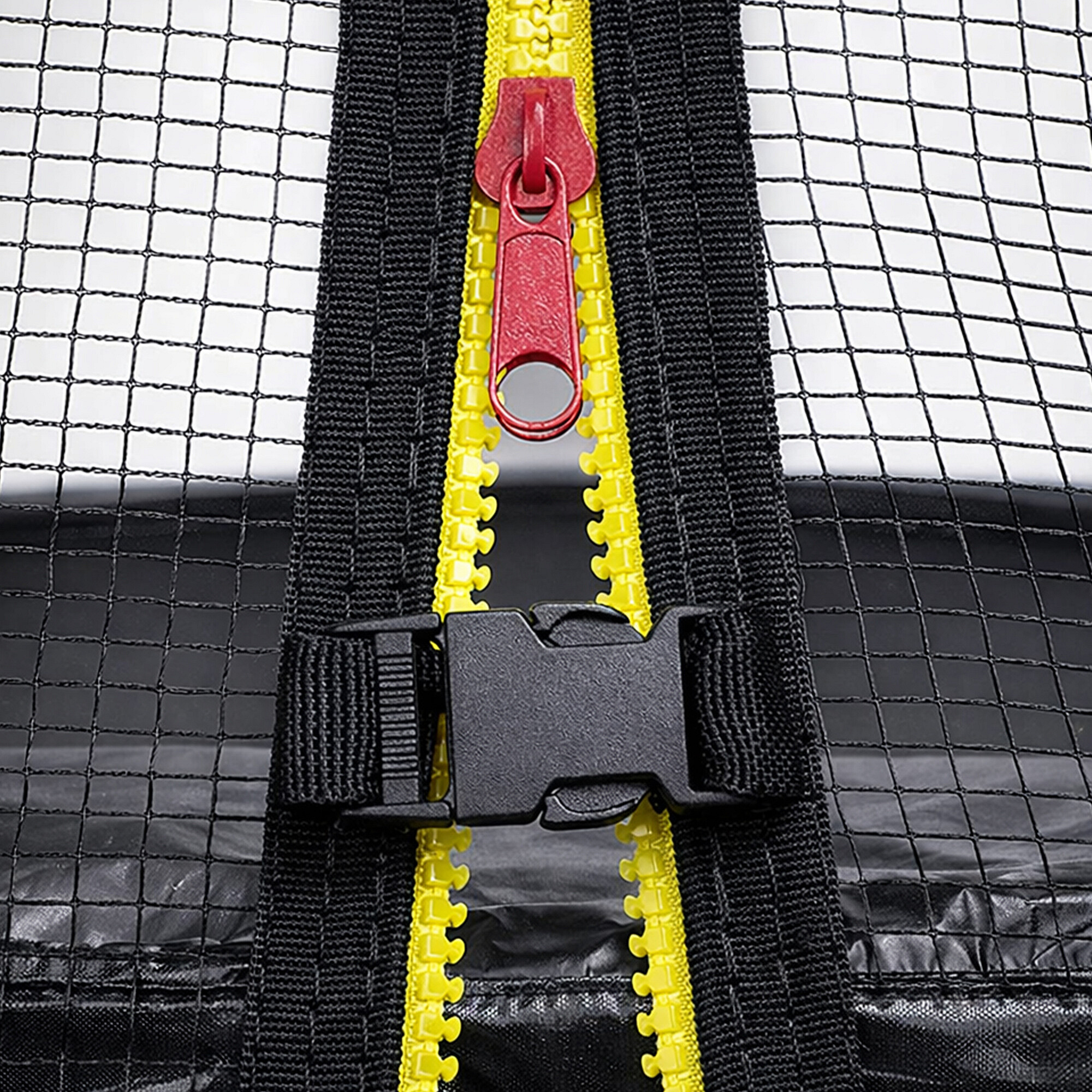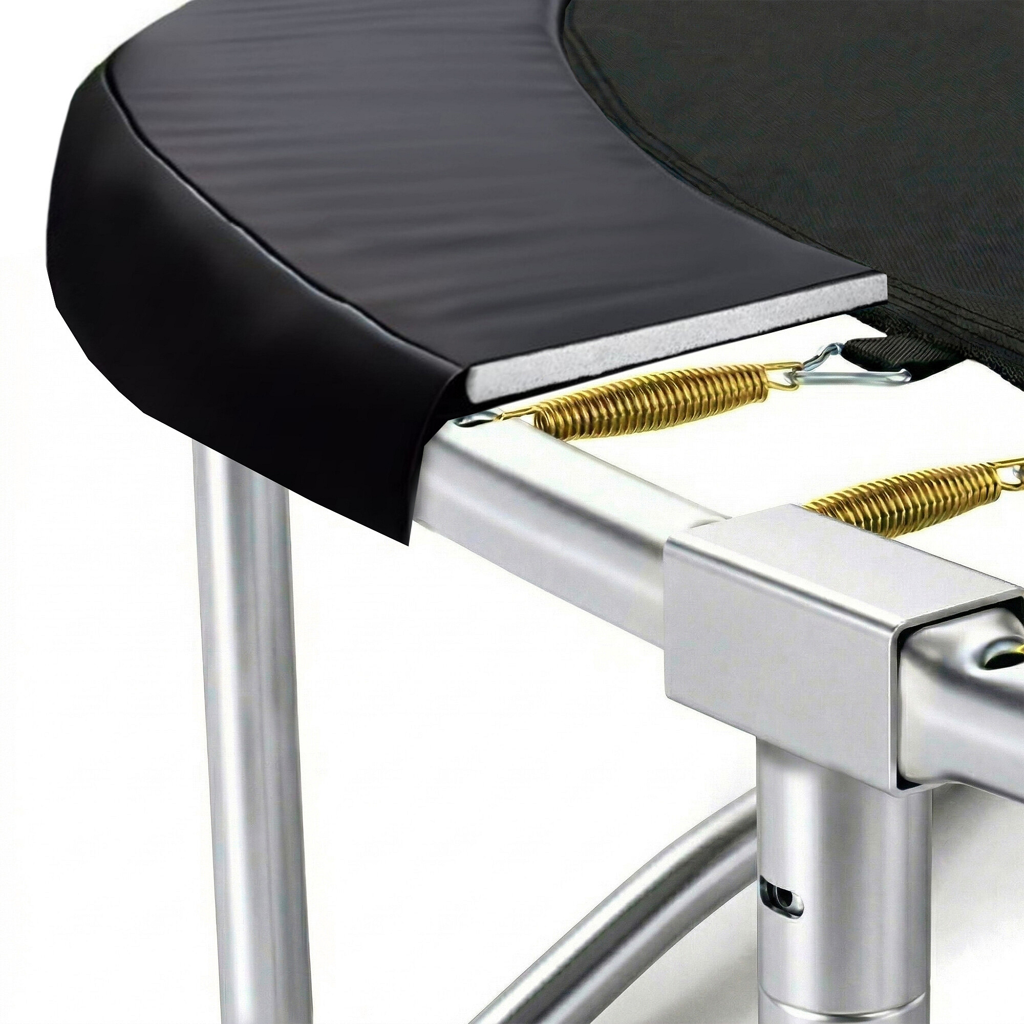 Siguranța maximă posibilă este asigurată de o centură perimetrală căptușită (acoperire pentru arcuri), care acoperă arcurile pe întregul perimetru al trambulinei.