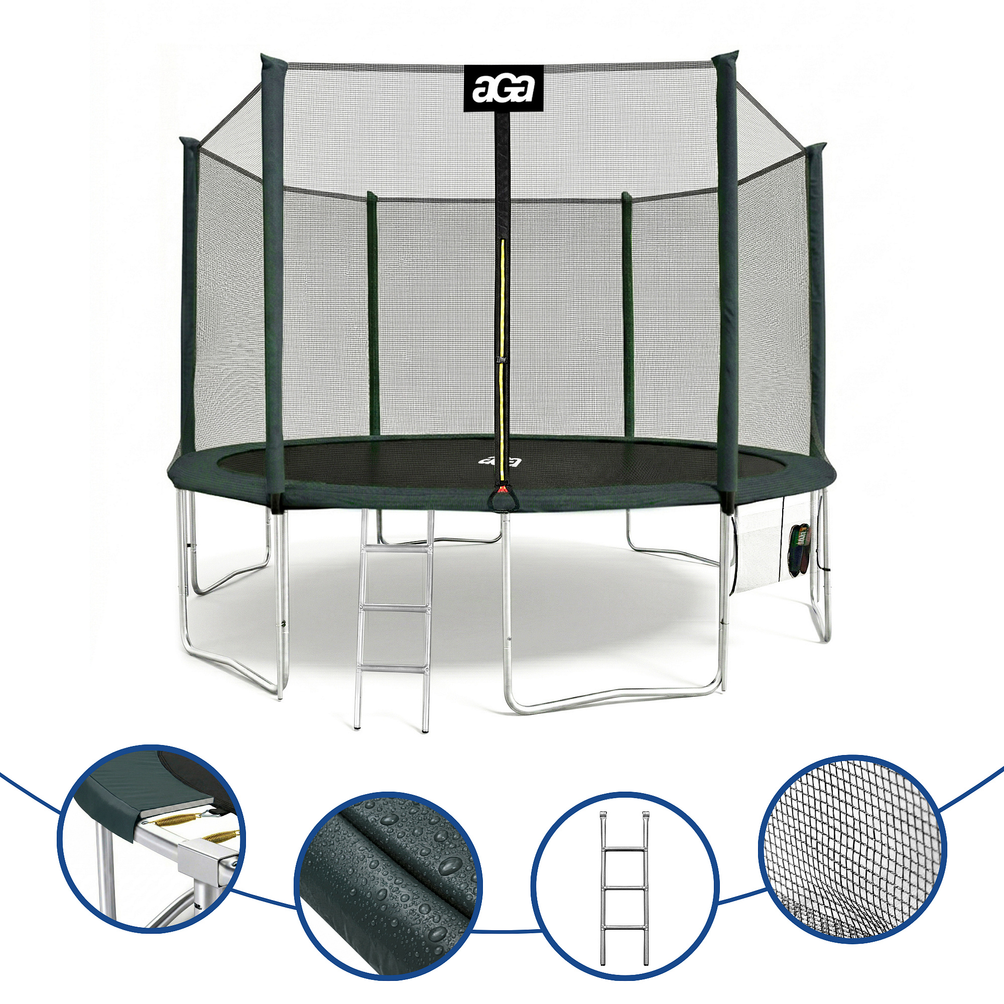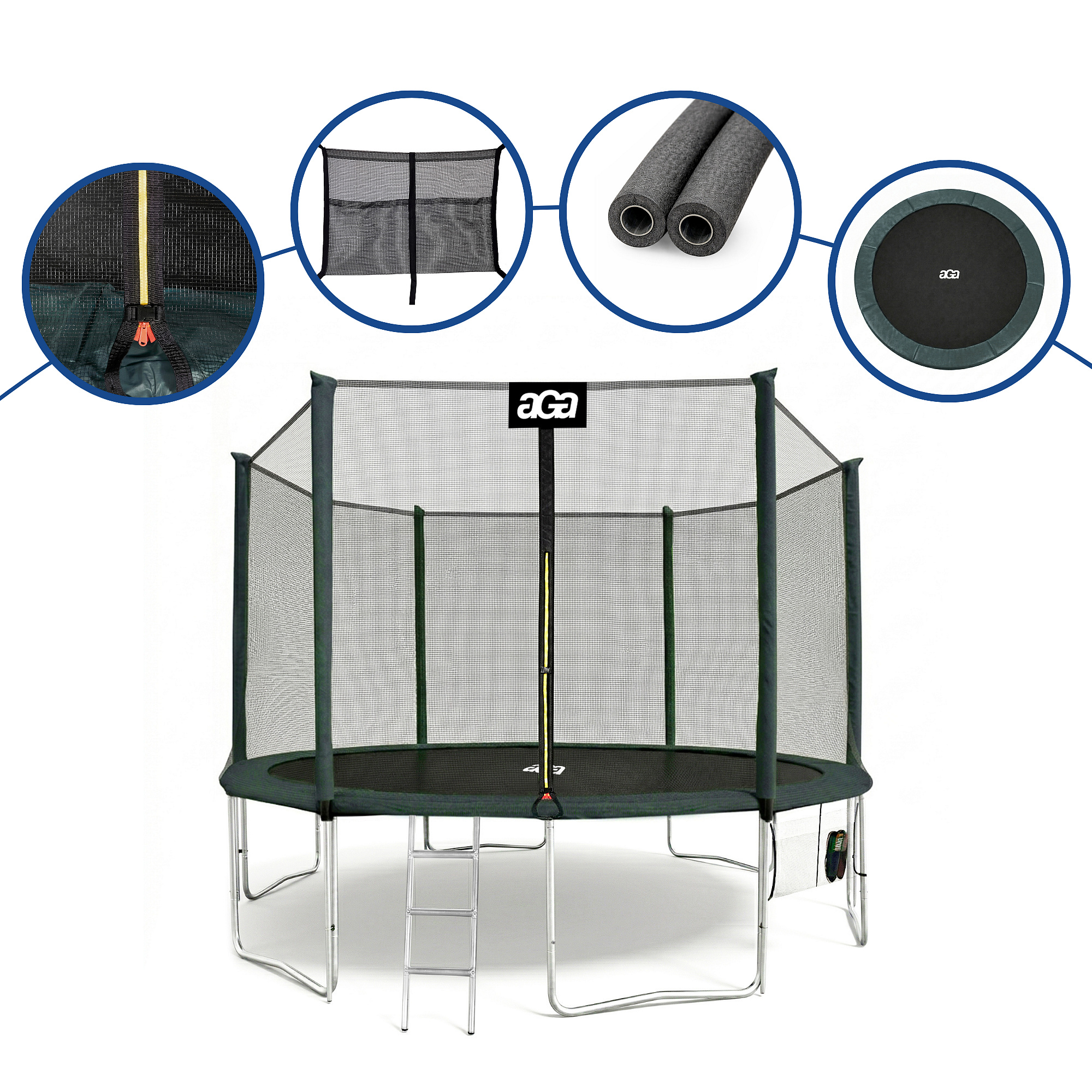 Specificații trambulină Aga SPORT PRO 400 cm Dark Green cu plasă de protecție.