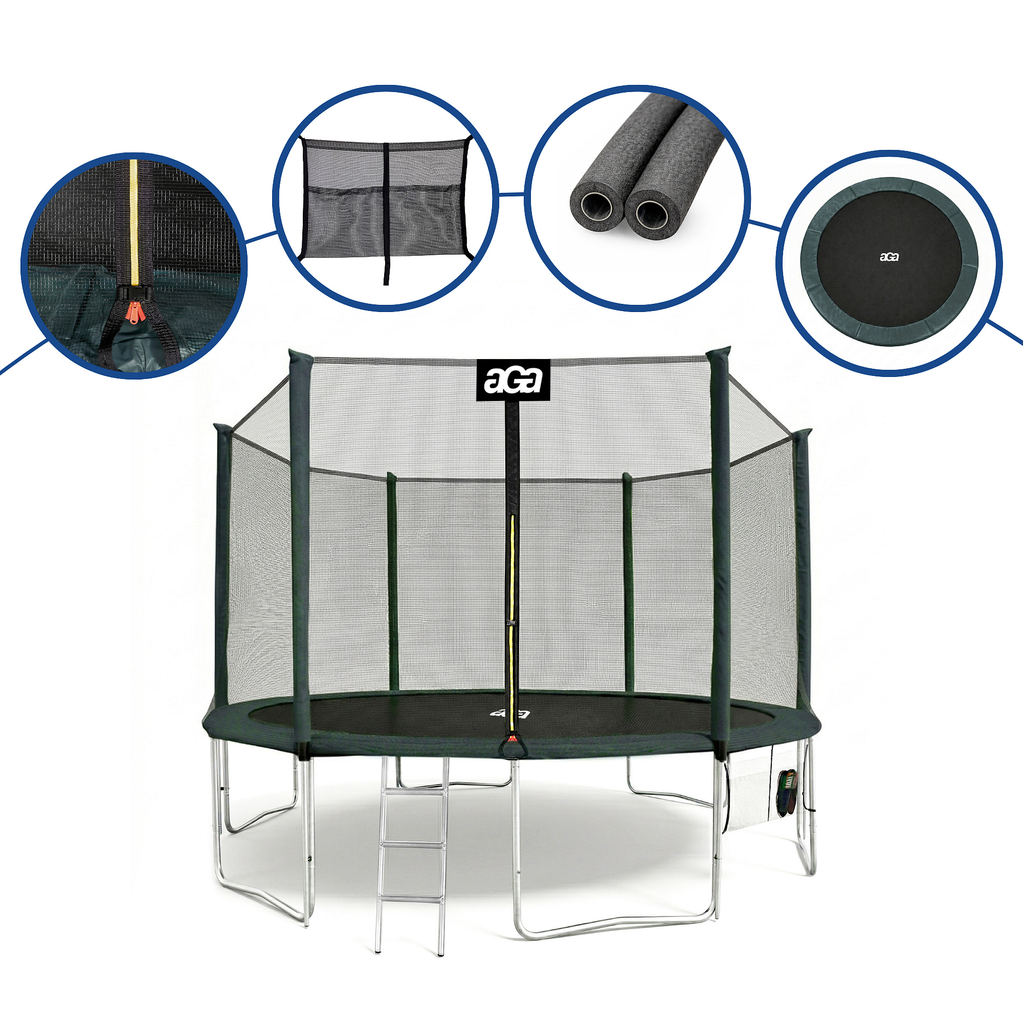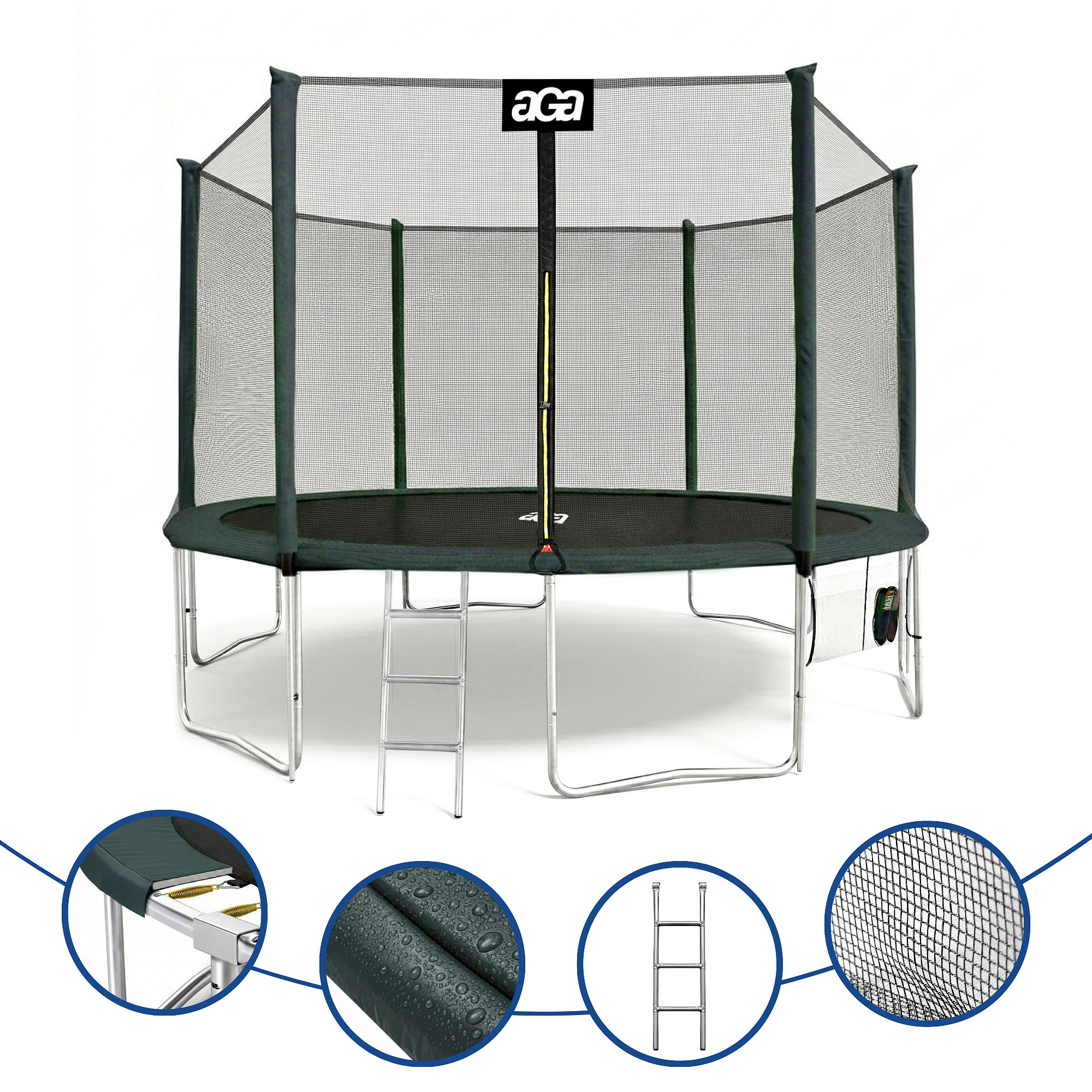 Aga SPORT PRO Trambulină 430 cm Verde închis + plasă de protecție + scară + buzunar pentru încălțăminte