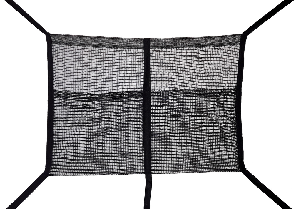 Plasa de protecție superioară are o deschidere prevăzută cu fermoar și asigurată cu o siguranță împotriva deschiderii accidentale.