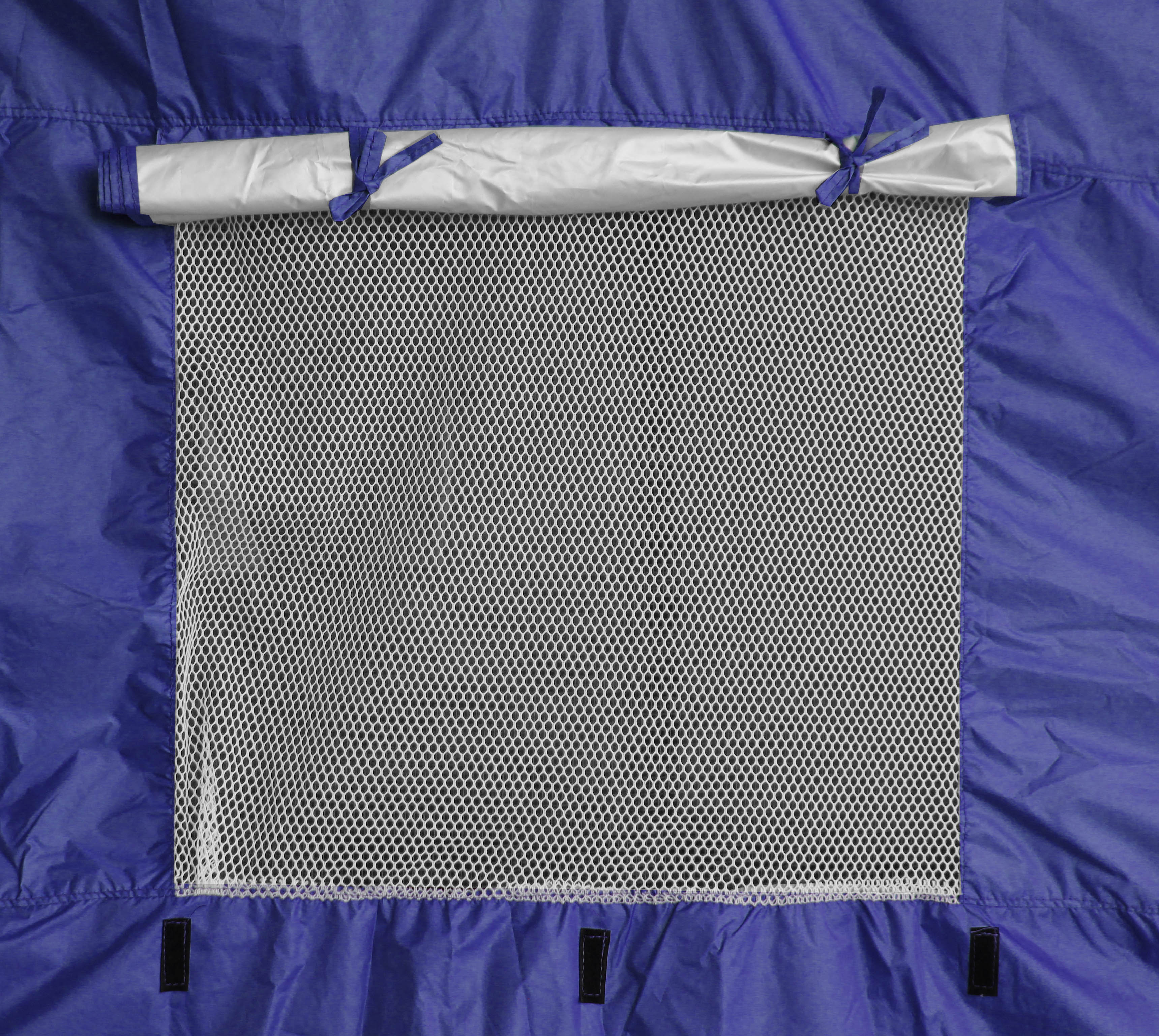 Cortul este echipat cu orificii de ventilație prevăzute cu jaluzele retractabile și plase împotriva insectelor.