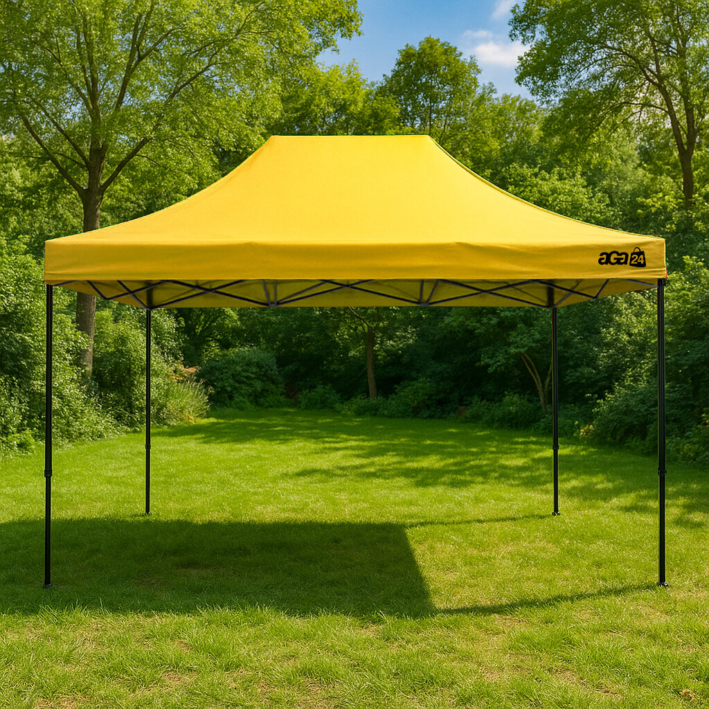 Stand de vânzare 3×4,5 m fără pereți laterali oferă mai mult spațiu pentru expunerea mărfurilor și un serviciu confortabil pentru clienți. Construcția deschisă asigură acces liber din toate părțile, ceea ce veți aprecia la piețe, târguri, evenimente publicitare și la sărbători în aer liber. În comparație cu un stand mai mic de 3×3 m, oferă o suprafață mai mare, dar rămâne ușor de transportat și rapid de asamblat.