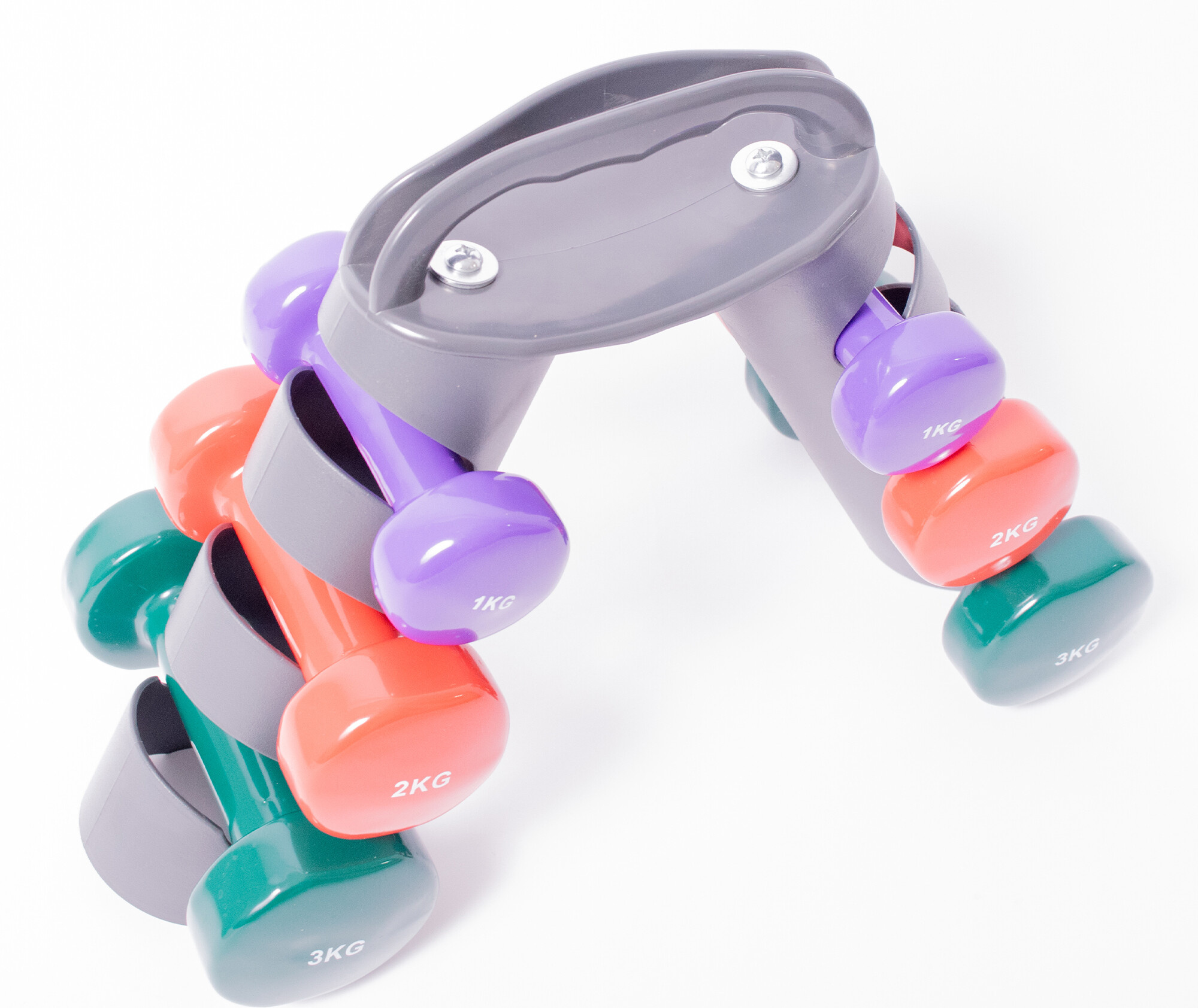 Datorită exercițiilor cu gantere, vă veți întări mușchii și vă veți subția silueta, iar un suport practic vă va ajuta să vă organizați spațiul de antrenament, astfel încât să aveți întotdeauna acces la accesoriile de fitness.
