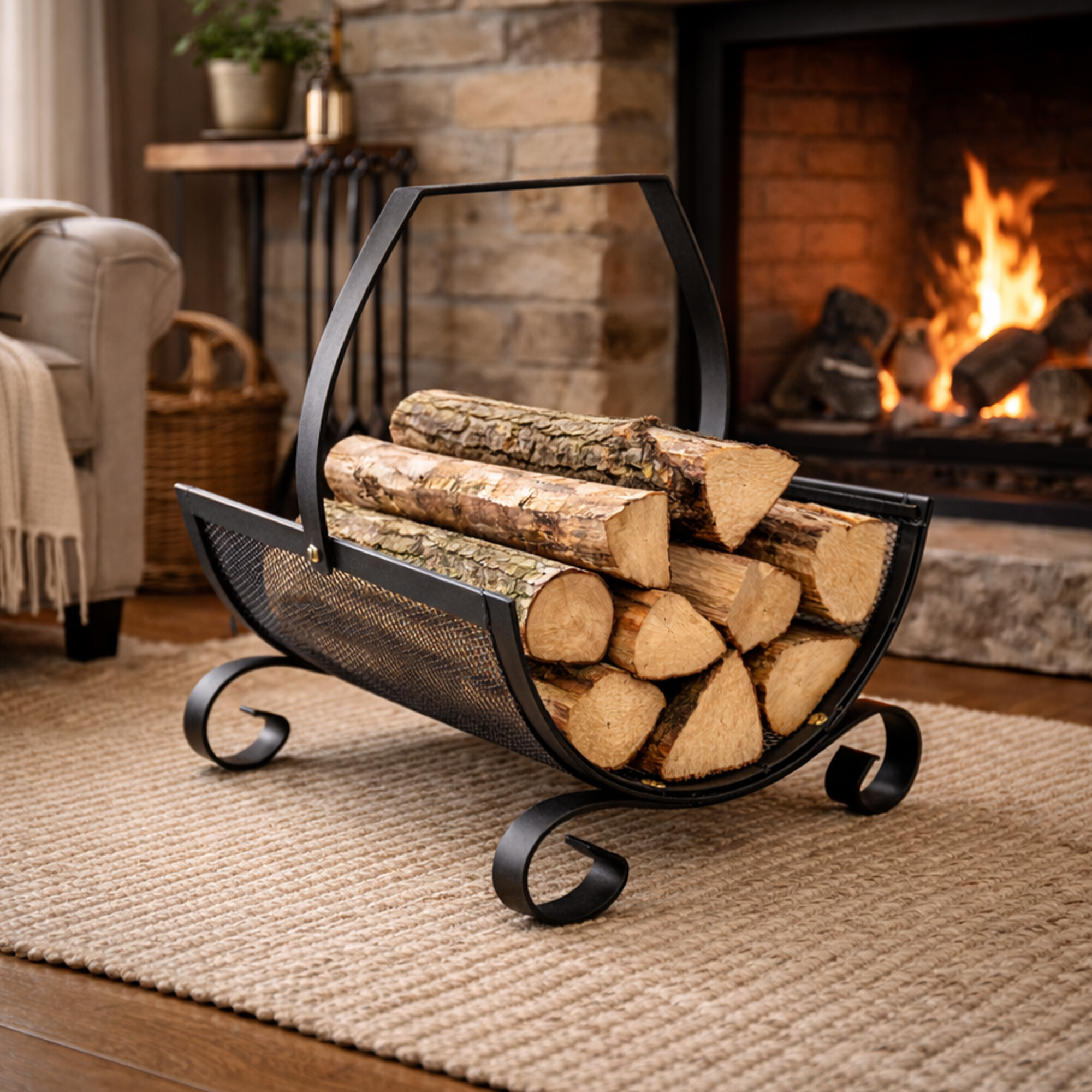 Suportul pentru lemne se potrivește în orice interior, datorită designului complet metalic de culoare neagră.