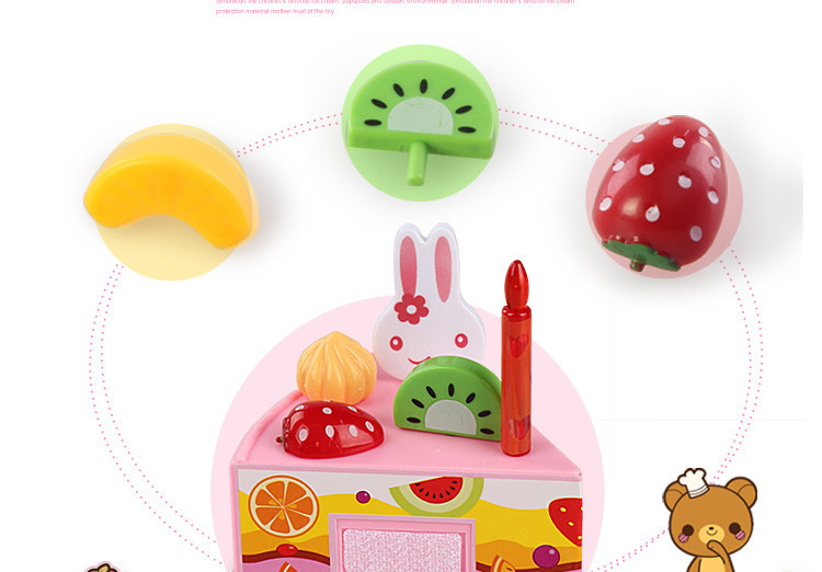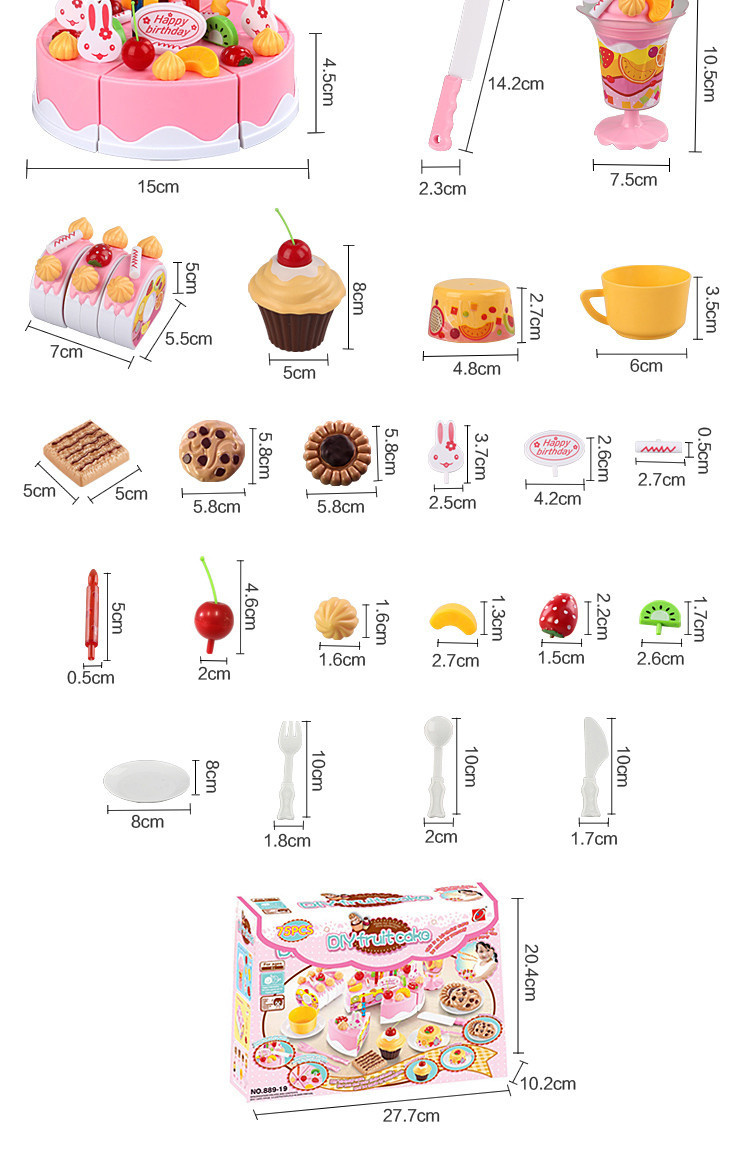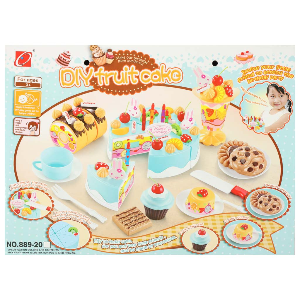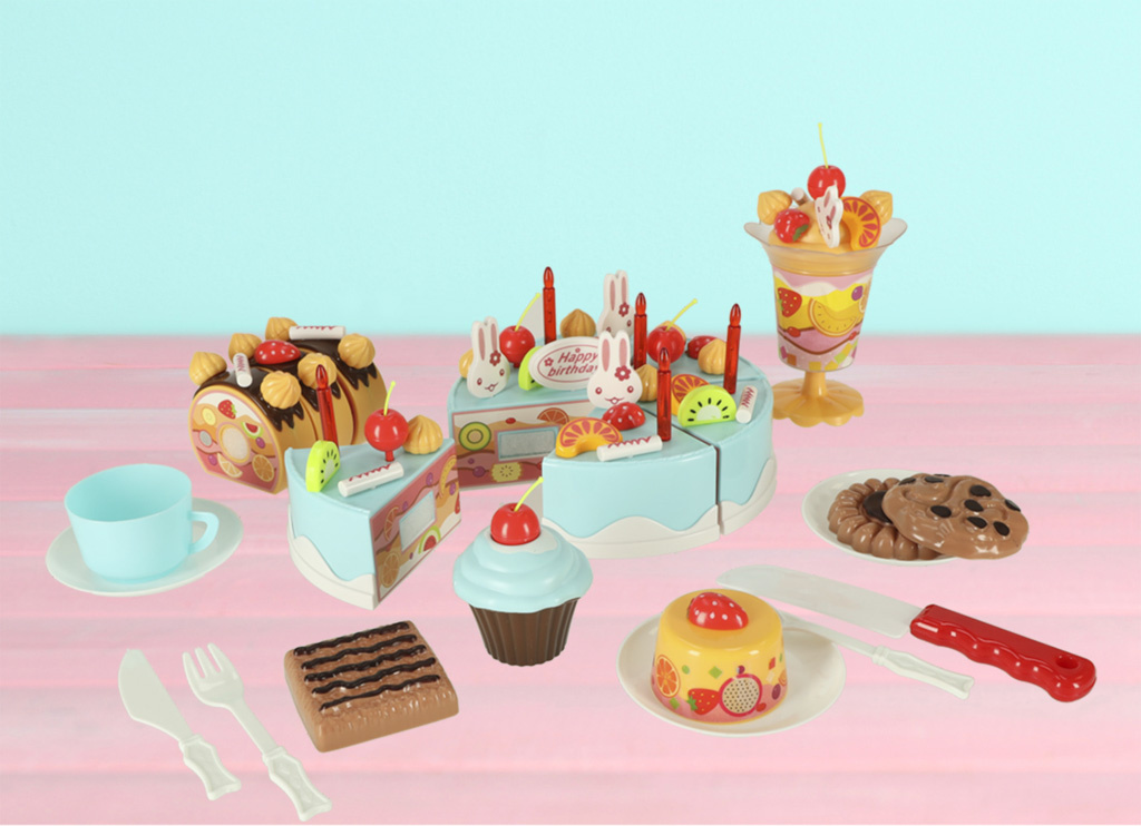 Tortul este compus din 6 bucăți. Un copil poate "tăia" tortul cu un cuțit de plastic, care face parte din set. Bucățile de tort sunt unite împreună cu ajutorul unui arici.