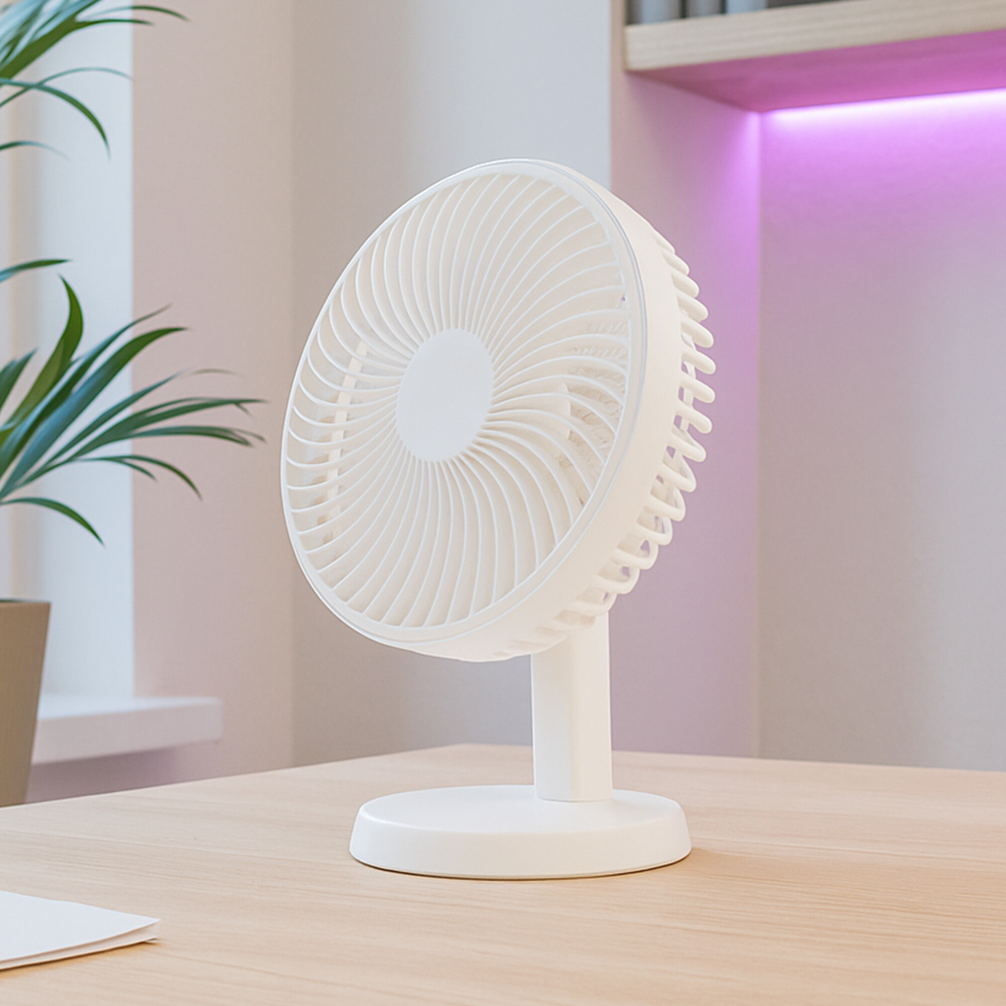 Ventilatorul de masă Aga este compact, portabil, fără fir și un ajutor silențios, care asigură o răcorire plăcută oriunde și oricând. Articulația de pe picior permite direcționarea fluxului de aer.