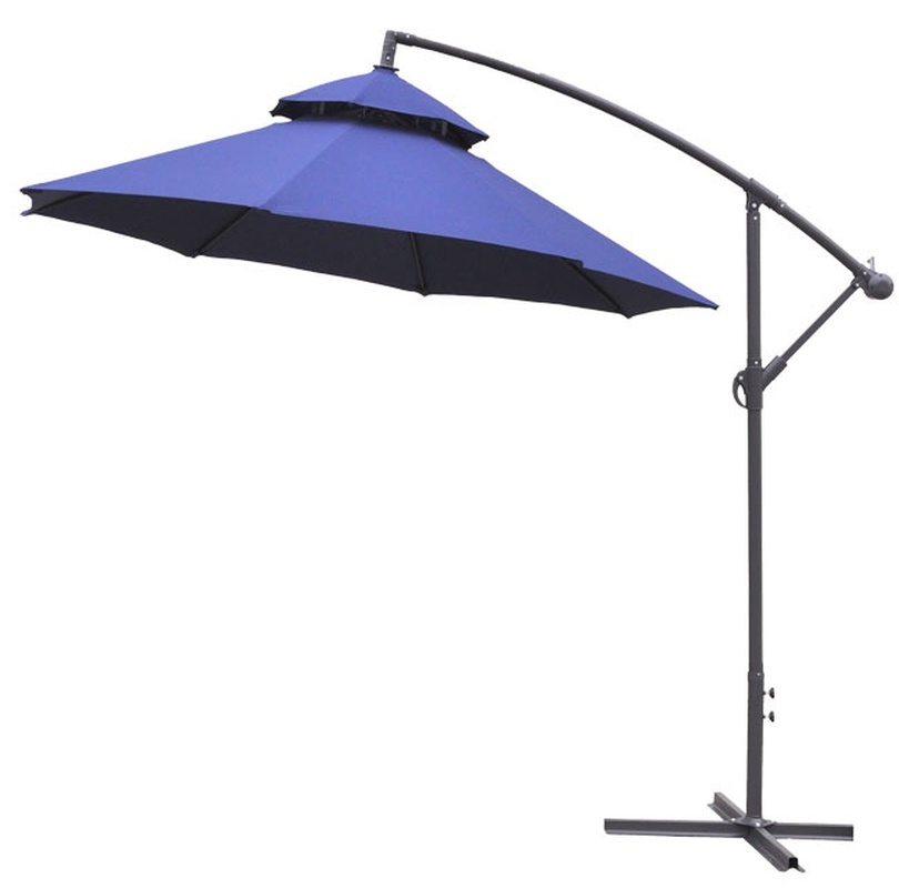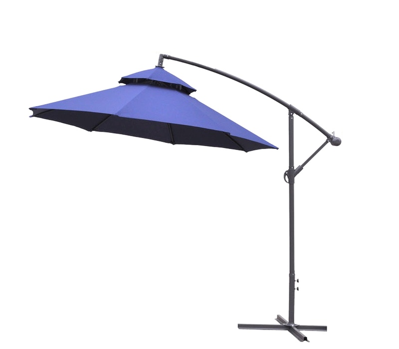 Umbrelă de grădină practică, fabricată din poliester rezistent, al cărei picior este plasat în afara zonei umbrite.