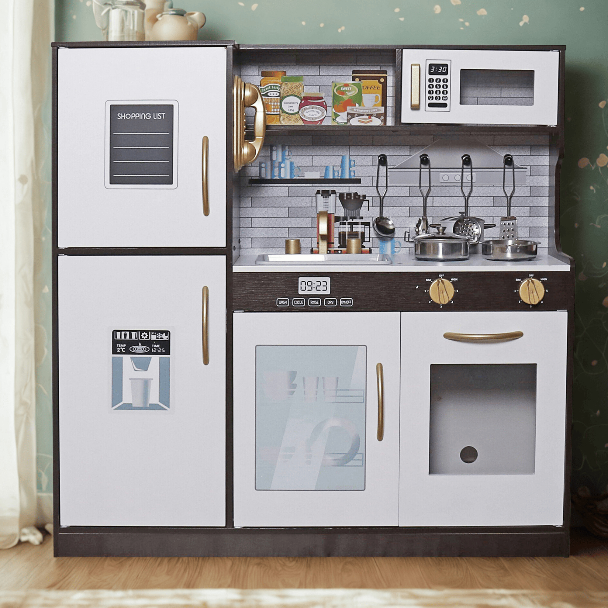 Aga4Kids Bucătărie din lemn Mr.Cook XXL cu echipament bogat și design modern, lumini și sunete Maro-gri
