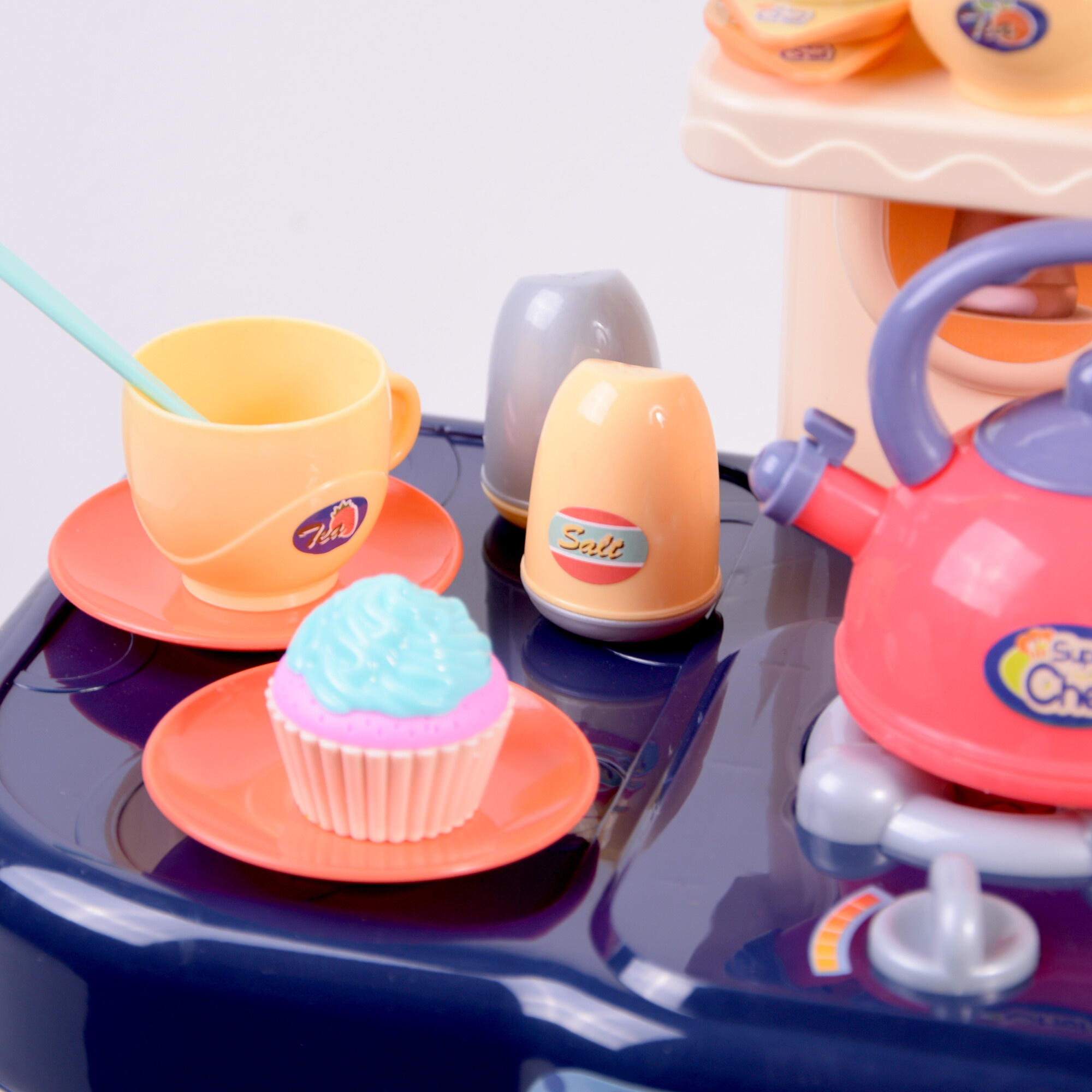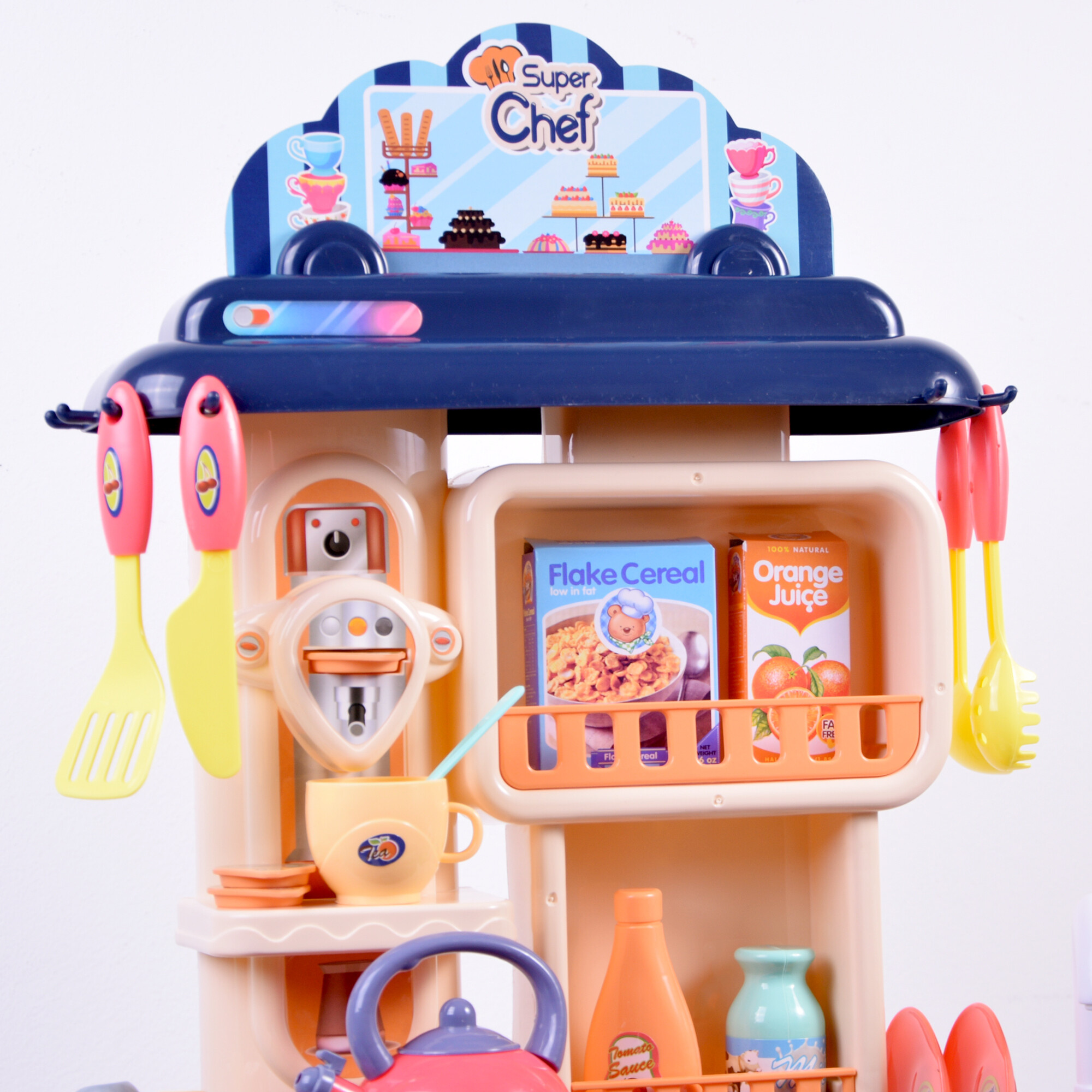 Bucătăria este echipată cu efecte sonore și luminoase ale aragazului, care adaugă un aspect realist jocului de gătit. Arzătorul aragazului are o funcție de eliberare a aburului rece, care le permite copiilor să experimenteze gătitul real. Butonii de la aragaz se rotesc și fac clic, făcând jocul mai interactiv și mai distractiv.