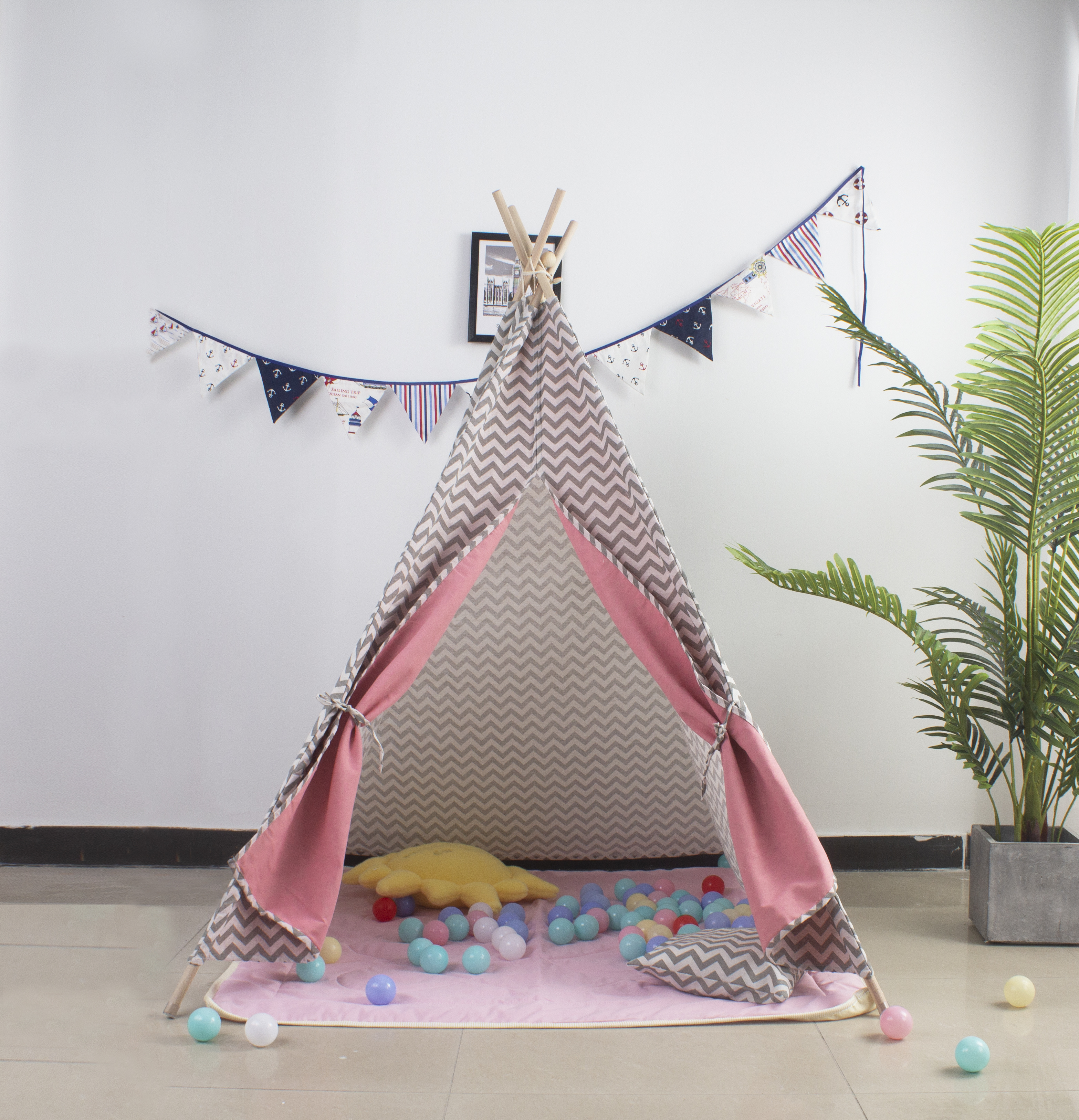 Cort de joacă pentru copii în formă de tip teepee indian, ideal pentru camera copilului sau pentru grădină, de la firma Aga4Kids.