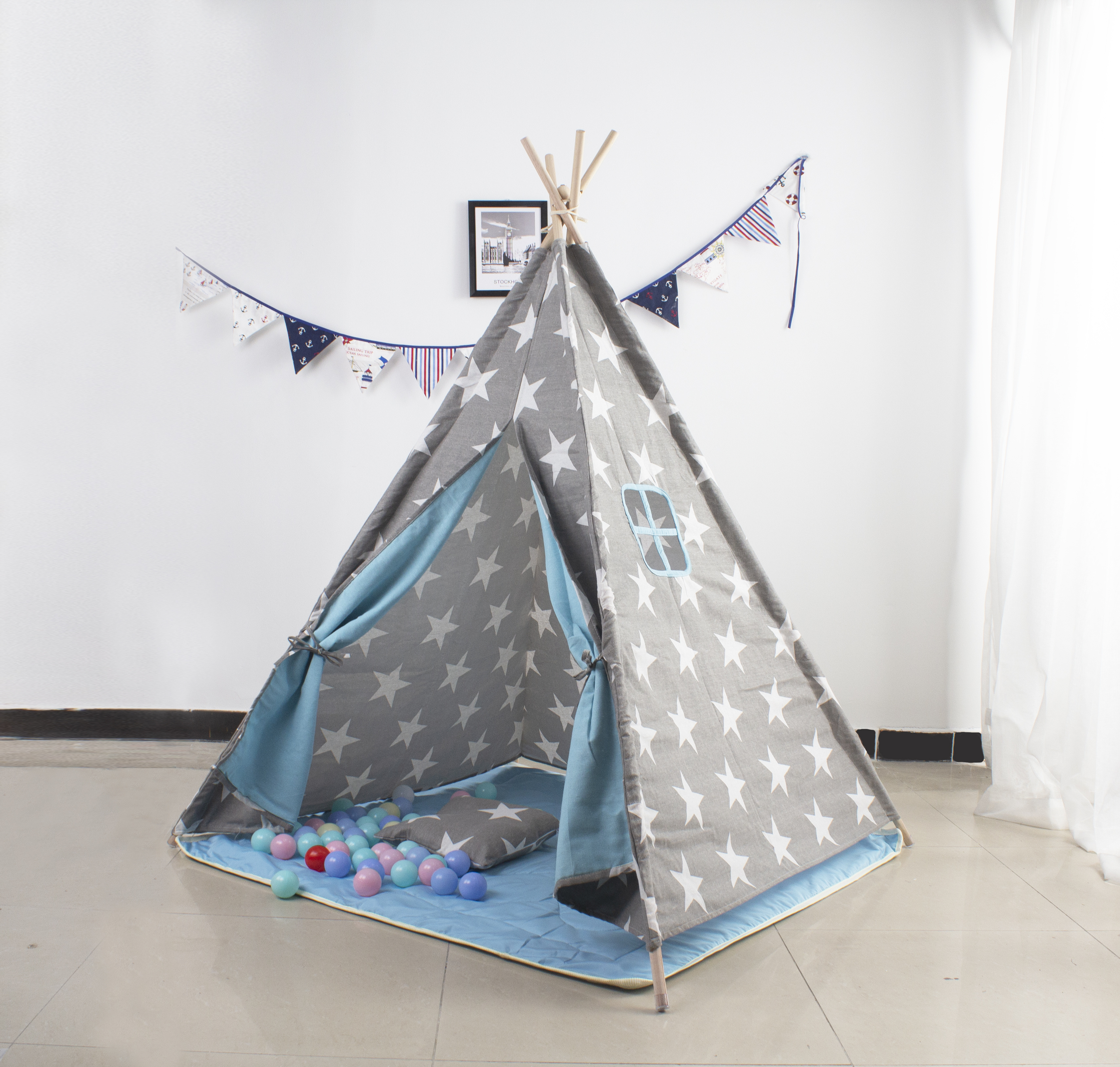 Cort de joacă pentru copii în formă de tip teepee indian, ideal pentru camera copilului sau pentru grădină, de la firma Aga4Kids.
