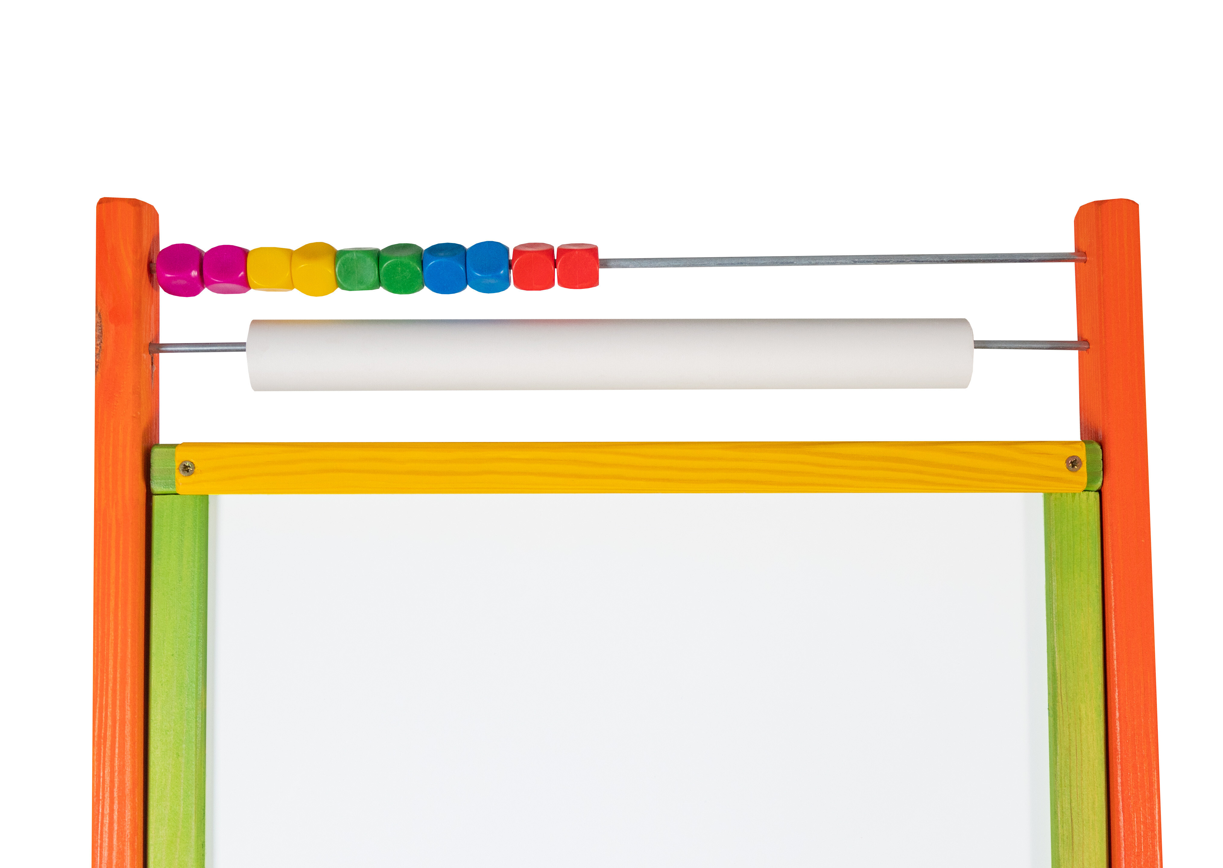 Tablă magnetică rotativă pentru copii cu raft de depozitare, abac și rolă de hârtie interschimbabilă de 15 metri, de la firma Aga4Kids.