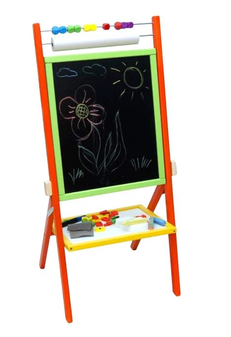 Tablă magnetică rotativă pentru copii cu raft de depozitare, abac și rolă de hârtie interschimbabilă de 15 metri, de la firma Aga4Kids.