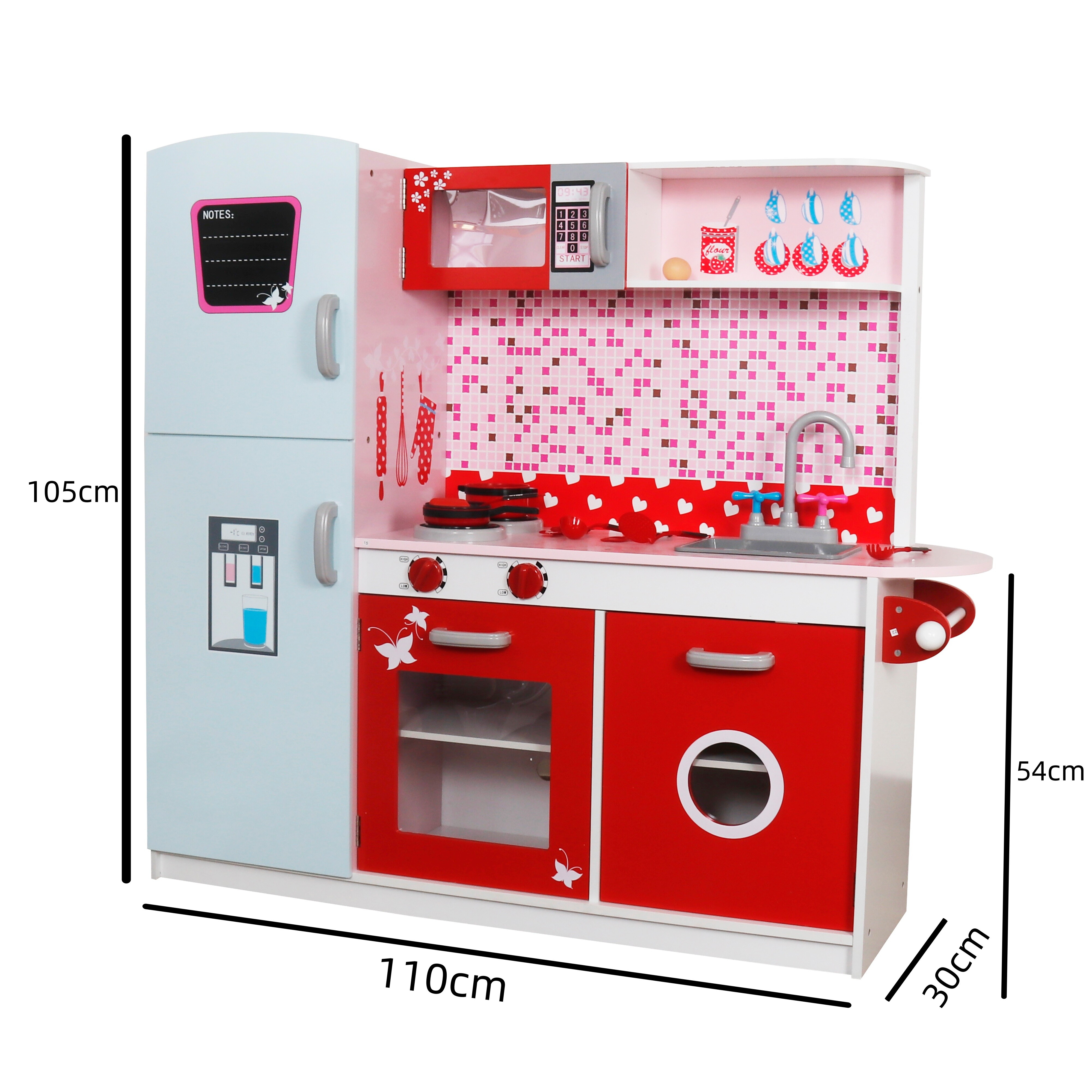 Acest model de bucătărie pentru copii este echipat cu o gamă largă de elemente funcționale și accesorii. Bucătăria este suficient de mare pentru ca mai mulți copii să se poată juca cu ea în același timp.