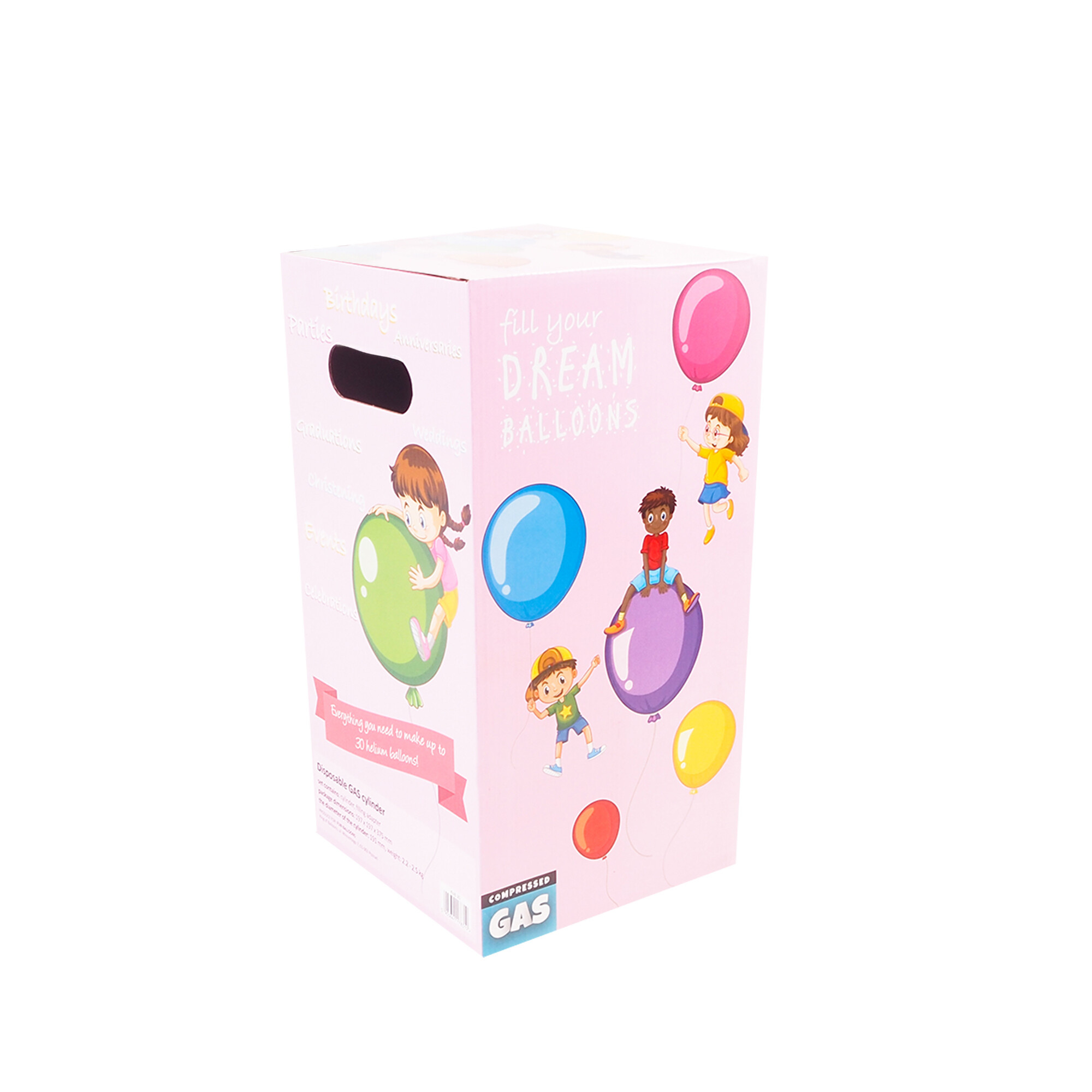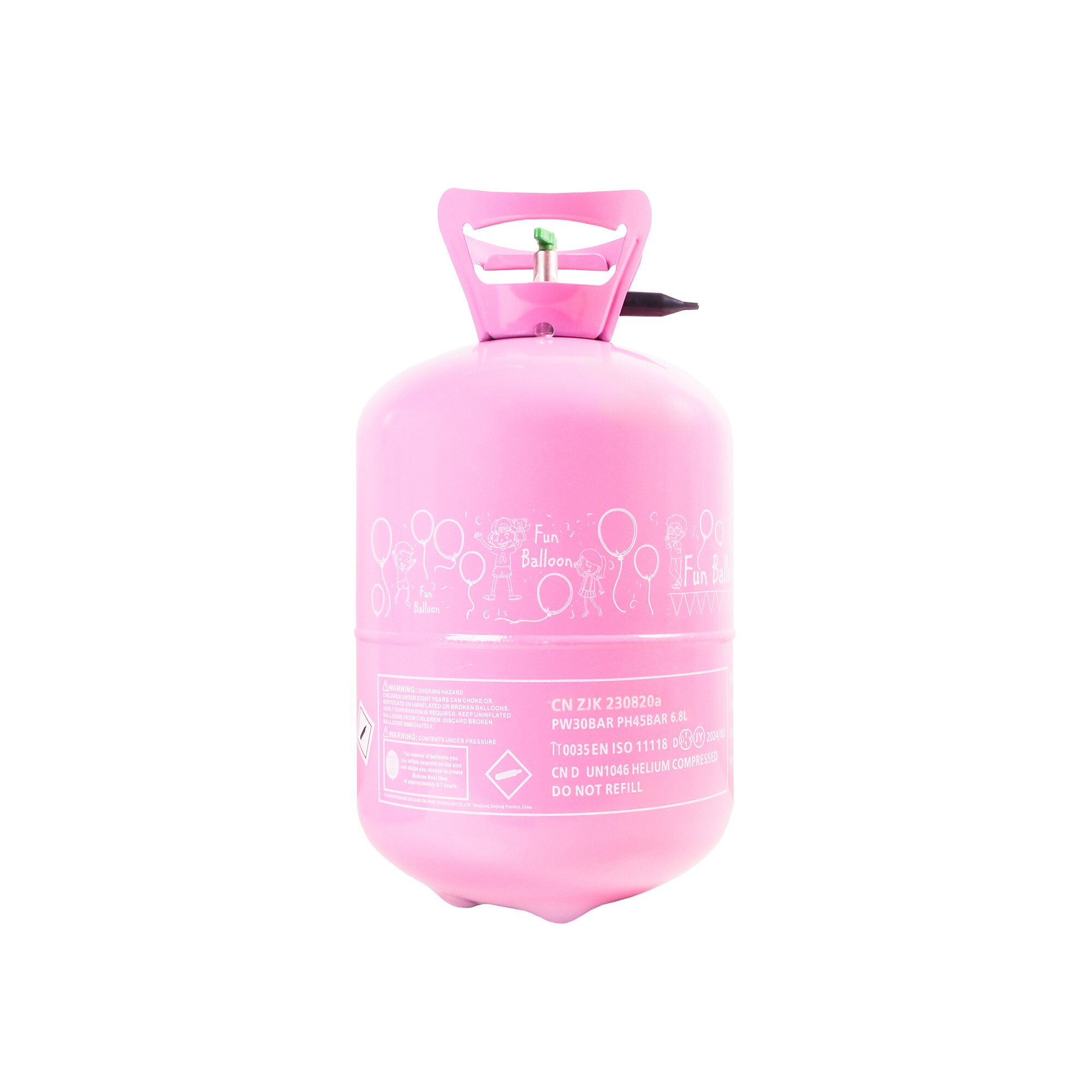 Butelie de heliu de unică folosință practică, cu ajutorul căreia puteți umfla până la 30 de baloane rapid și simplu.