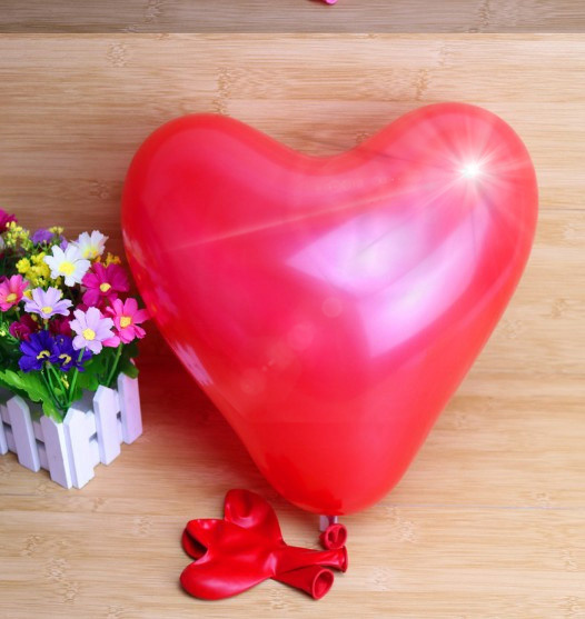 Balonul gonflabil are forma unei inimi după umflare și poate fi umflat cu heliu sau aer.