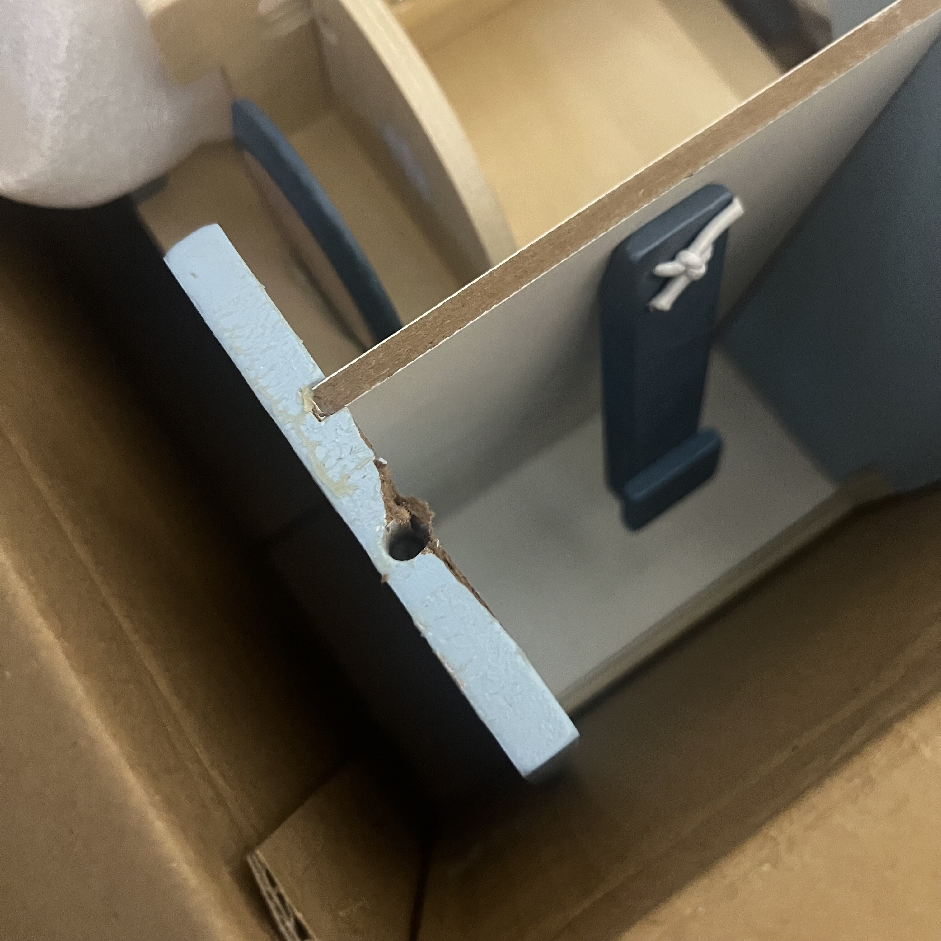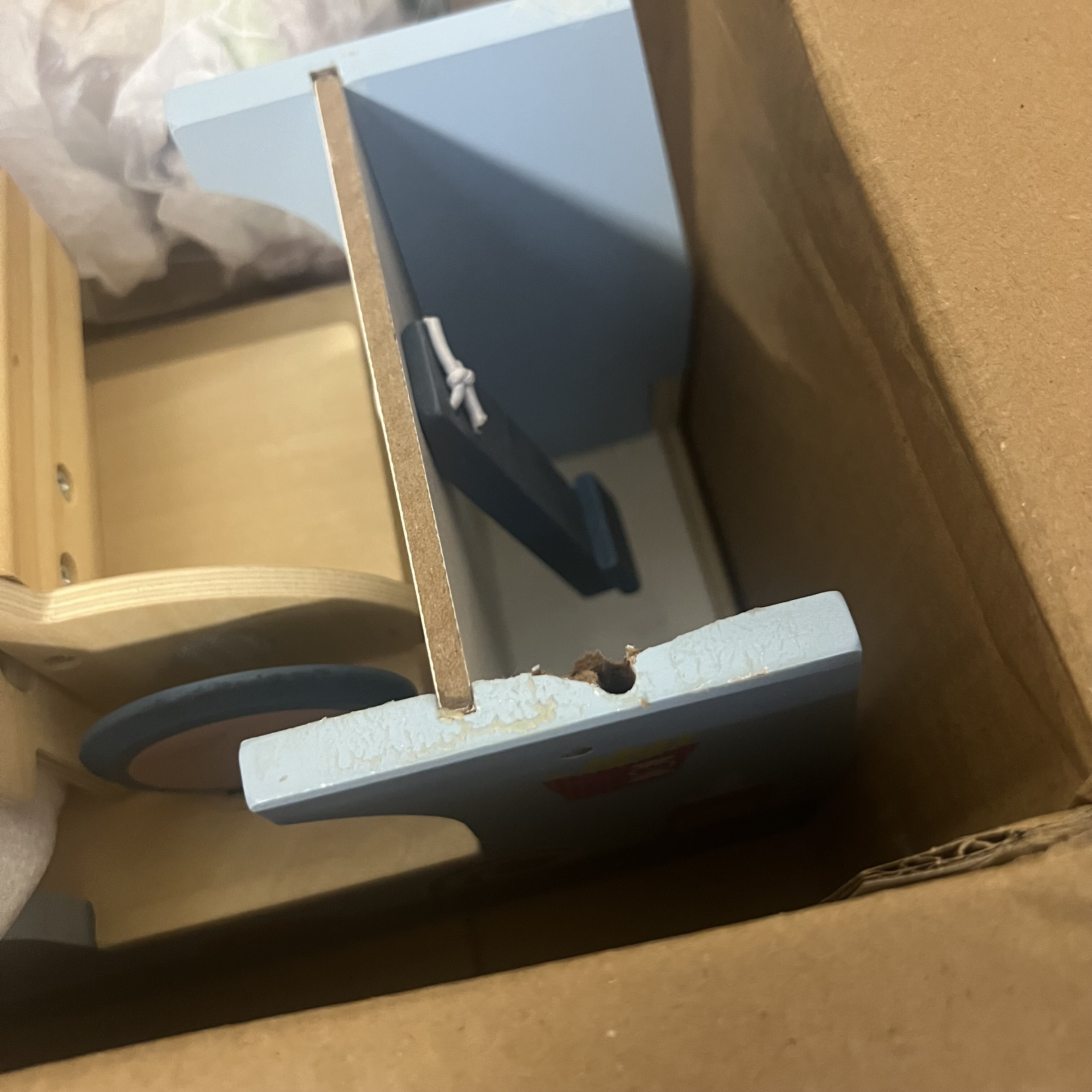 Jucărie cu elemente laterale rupte care leagă partea superioară și inferioară. Pentru reparații de tip DIY.