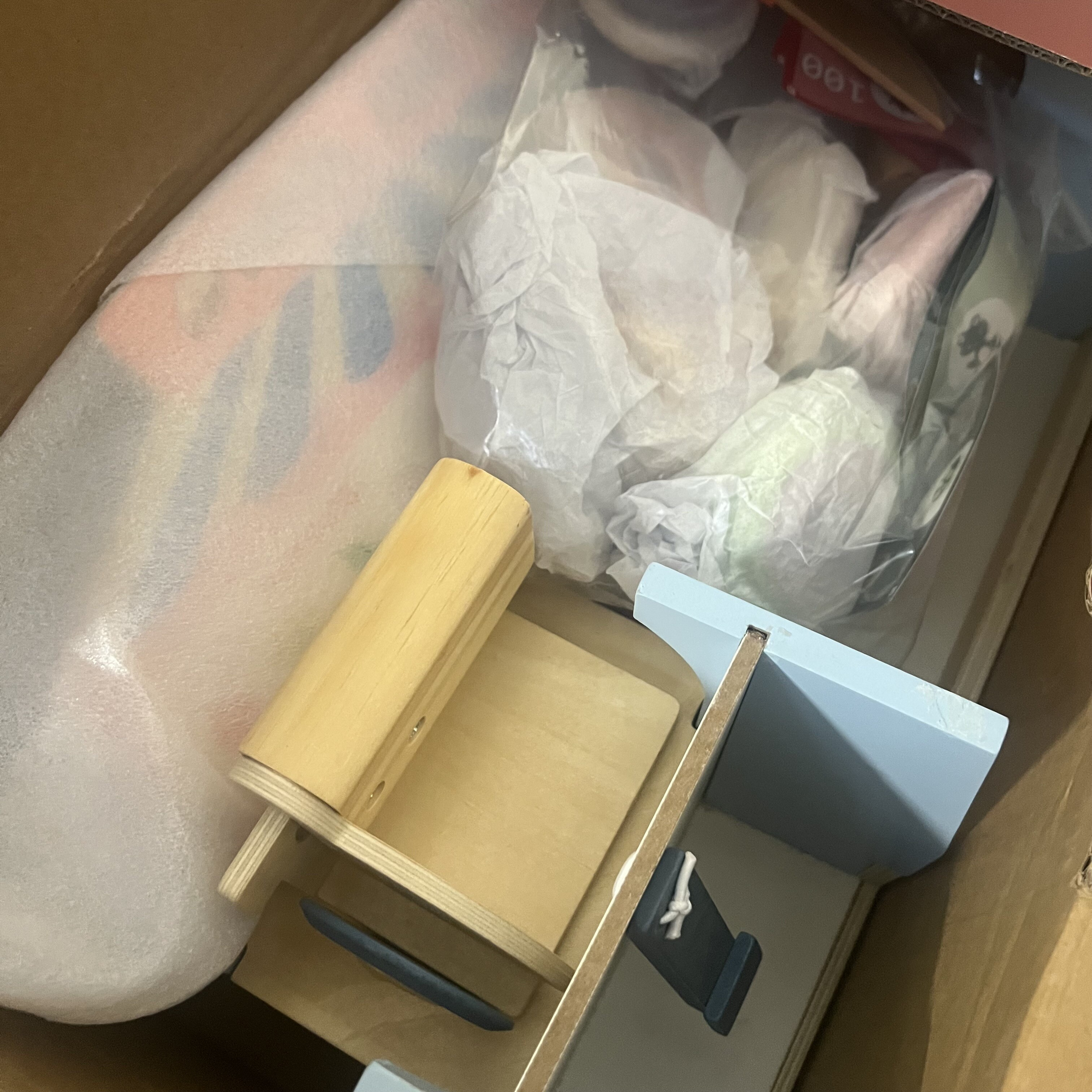 - Material utilizat: Lemn, accesorii din material textil