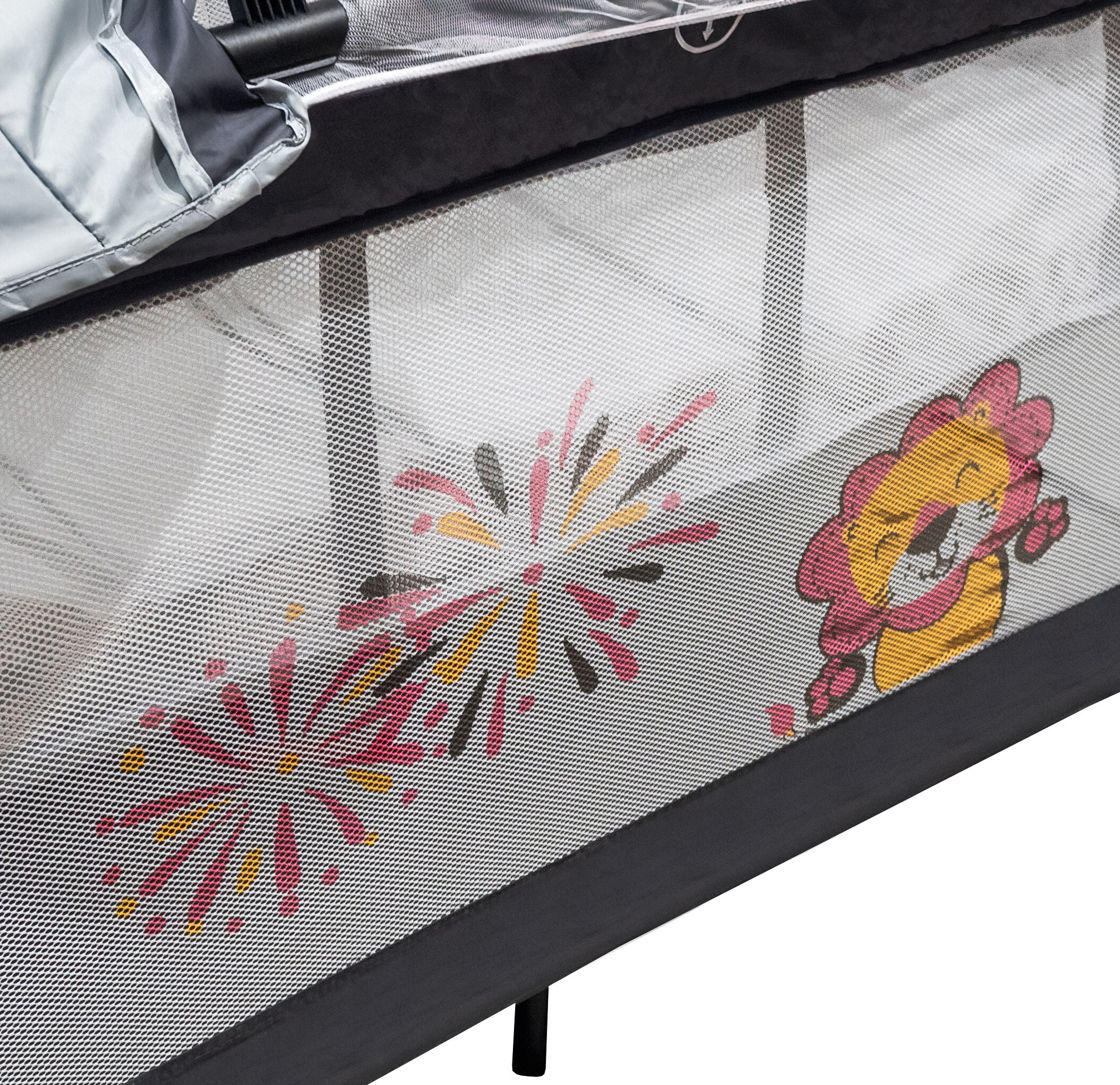 Datorită plasei de țânțari, care este inclusă în livrare, pătuțul poate fi plasat afară fără teama de a fi înțepat de insecte. Parasolarul protejează împotriva radiațiilor solare și asigură astfel un somn liniștit.