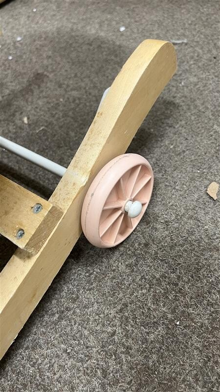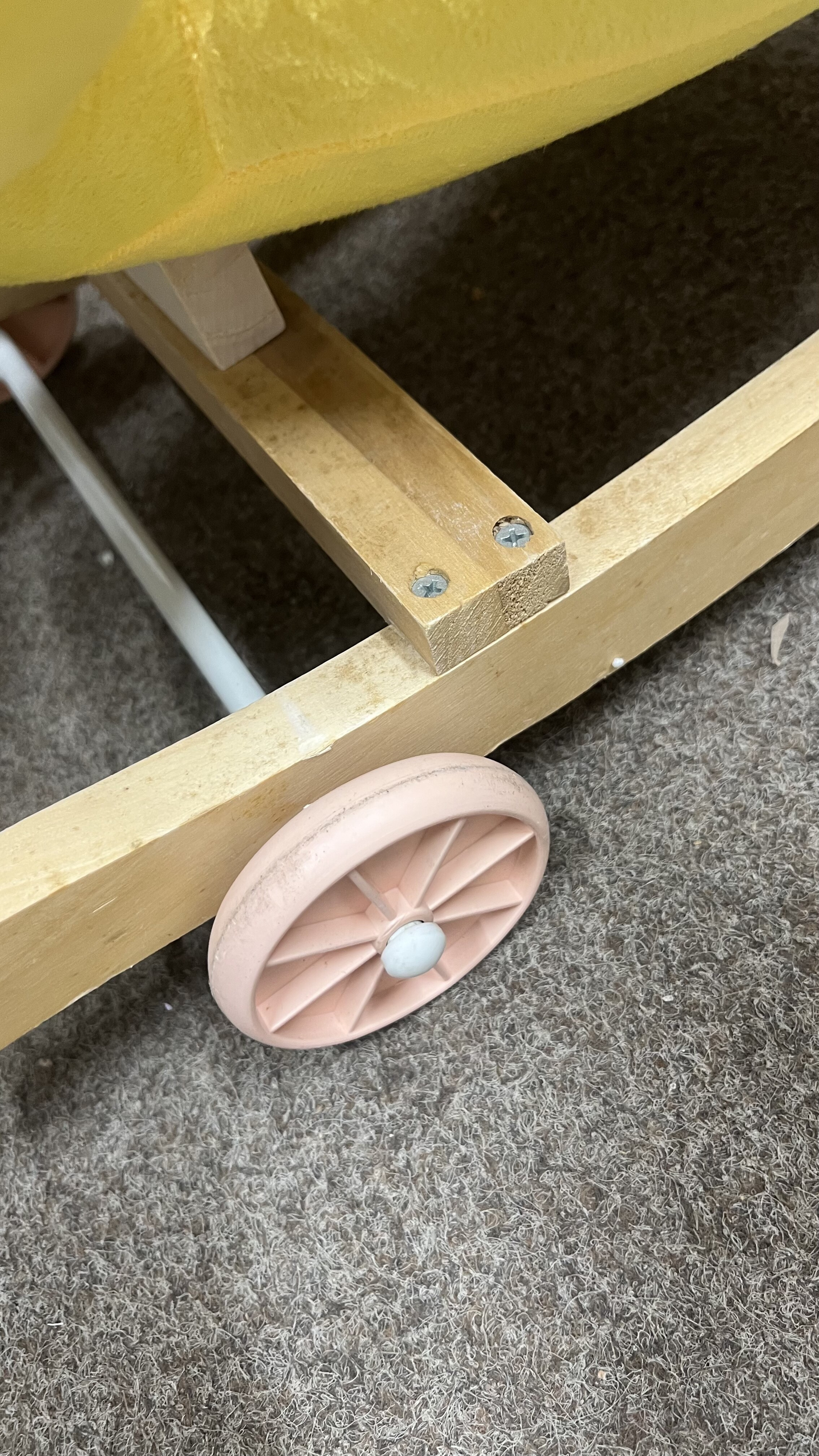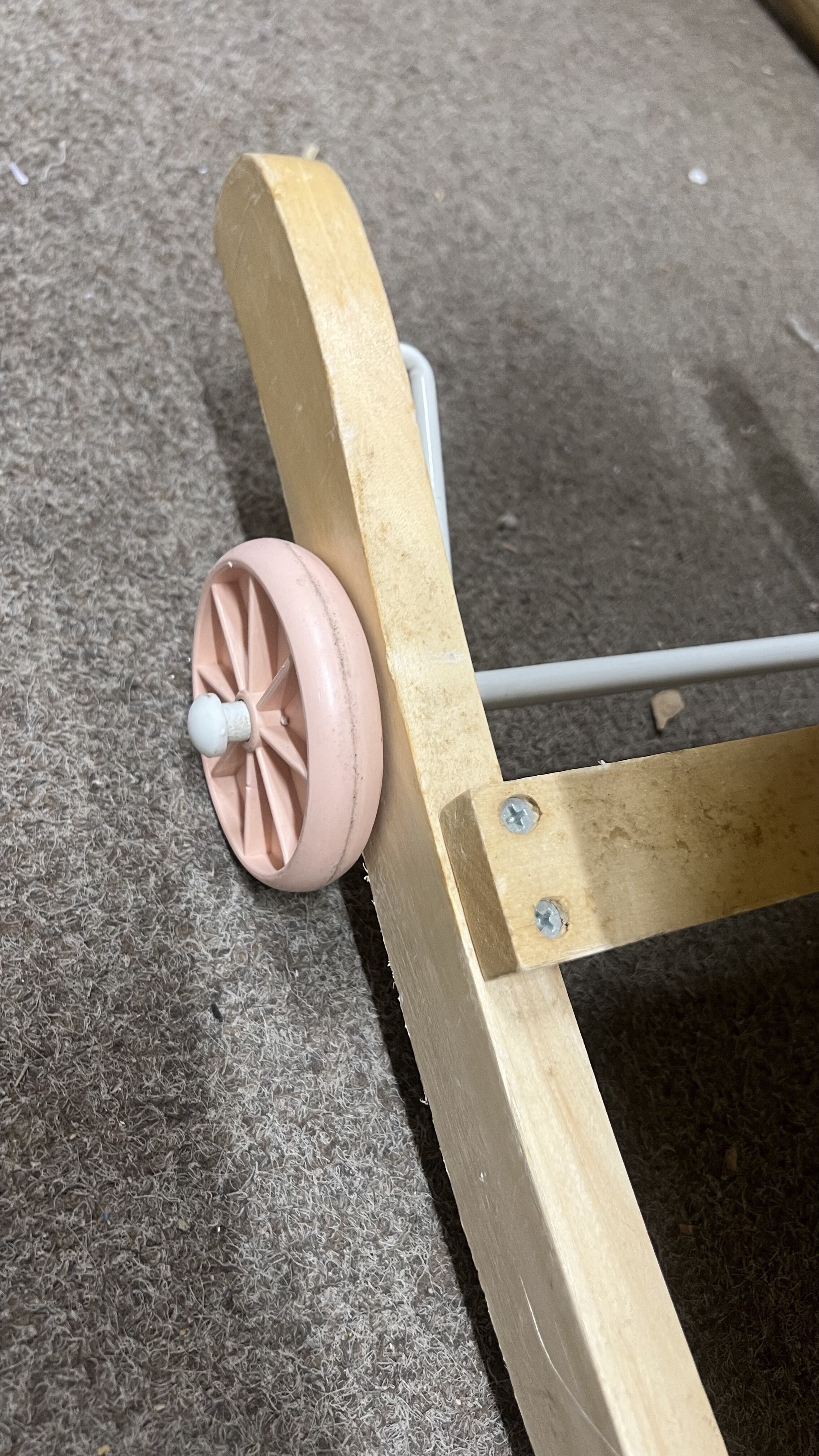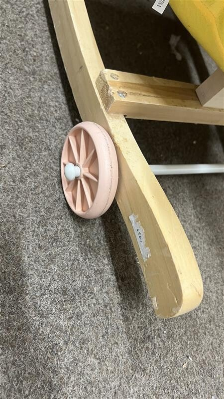 Scaunul balansoar este complet funcțional, încadrat în categoria 2. calității din cauza părților de leagăn din lemn zgâriate.