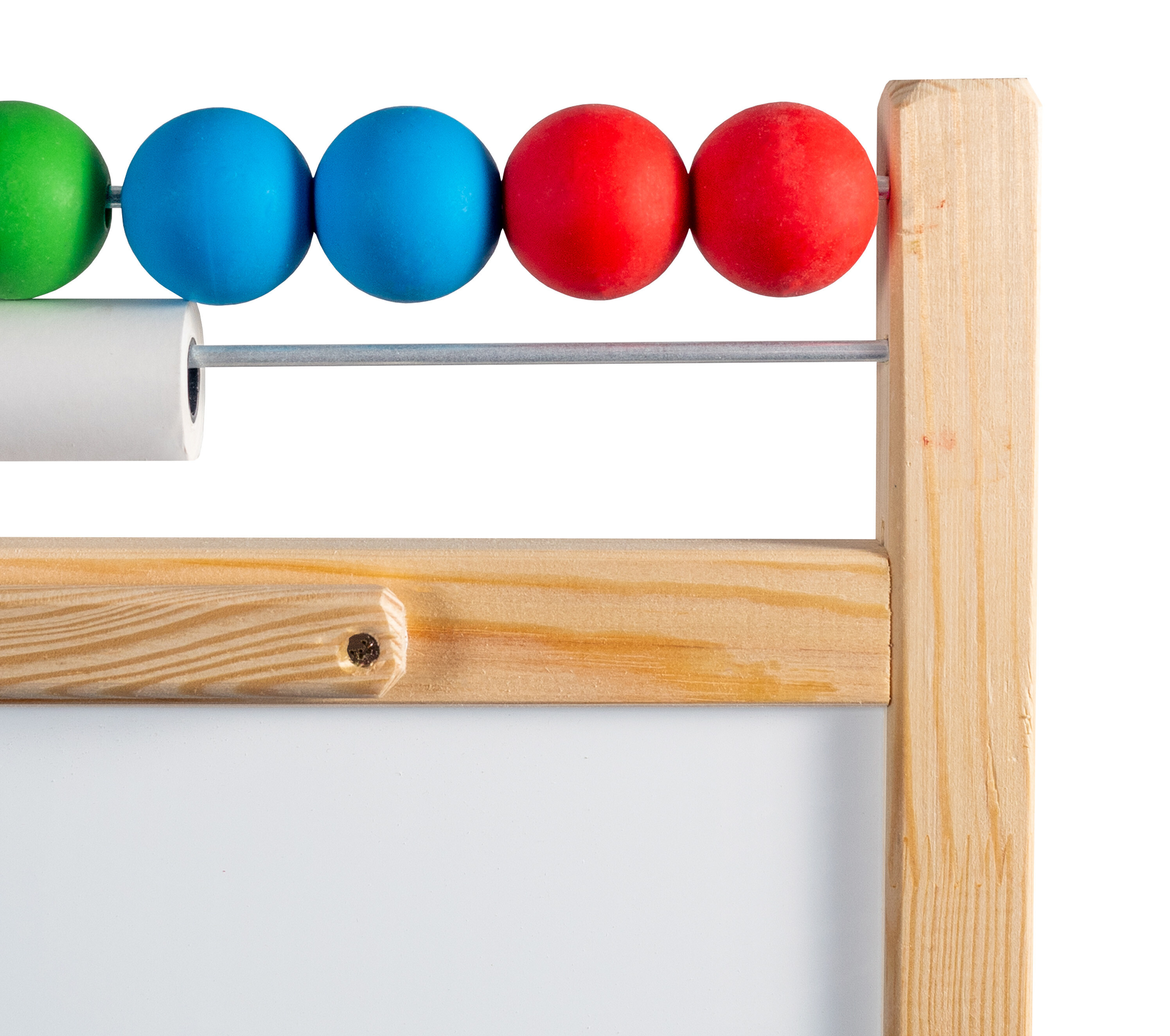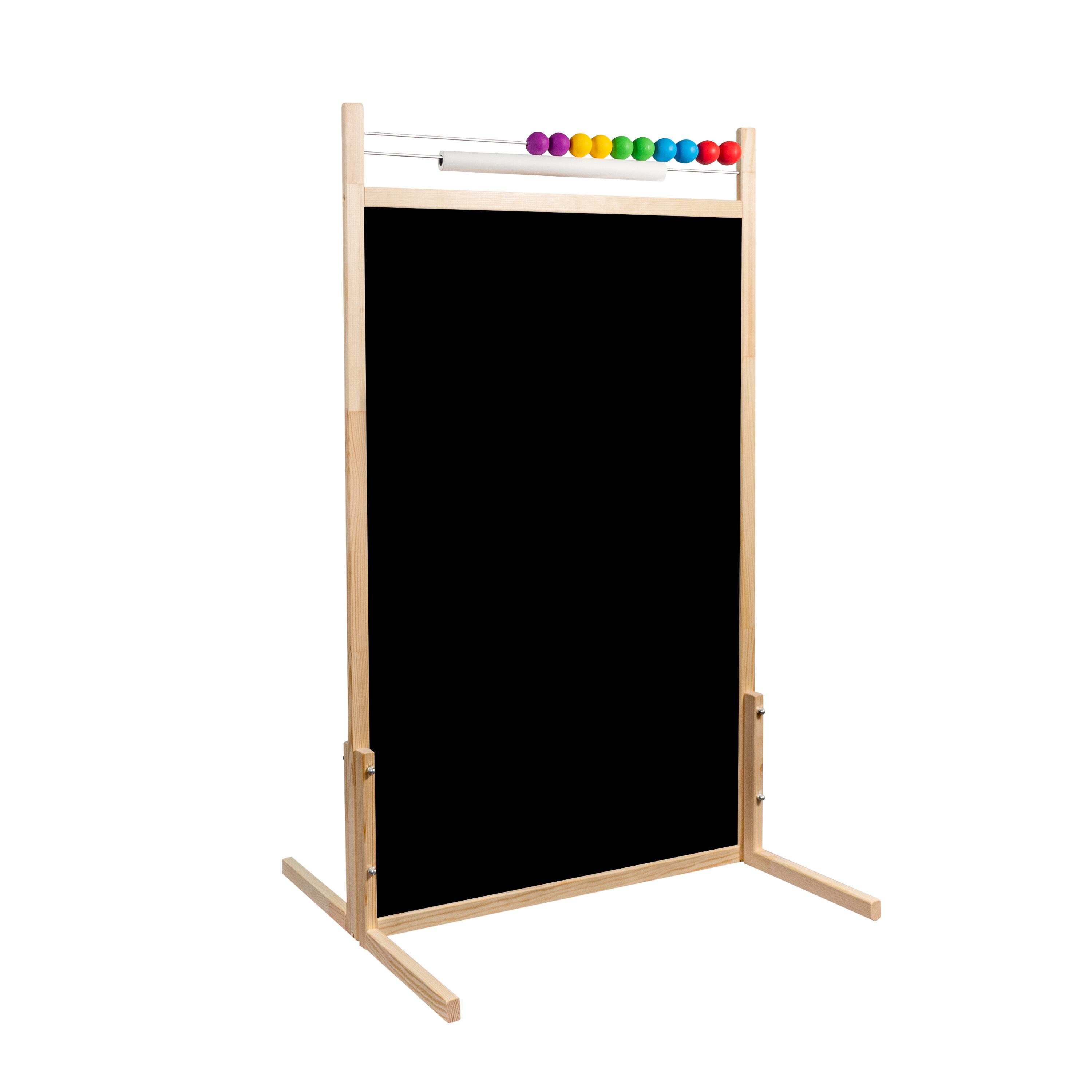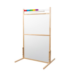 - Setul include - tablă dublă față-verso, abac, rolă de hârtie (20m), burete, cârpă, cretă și marker