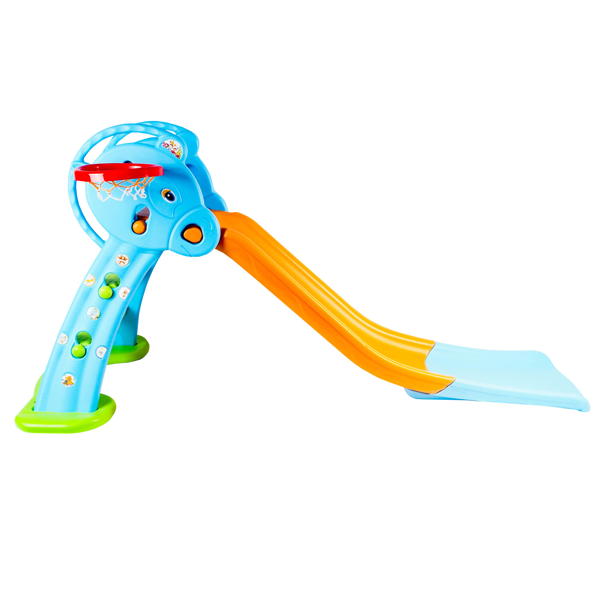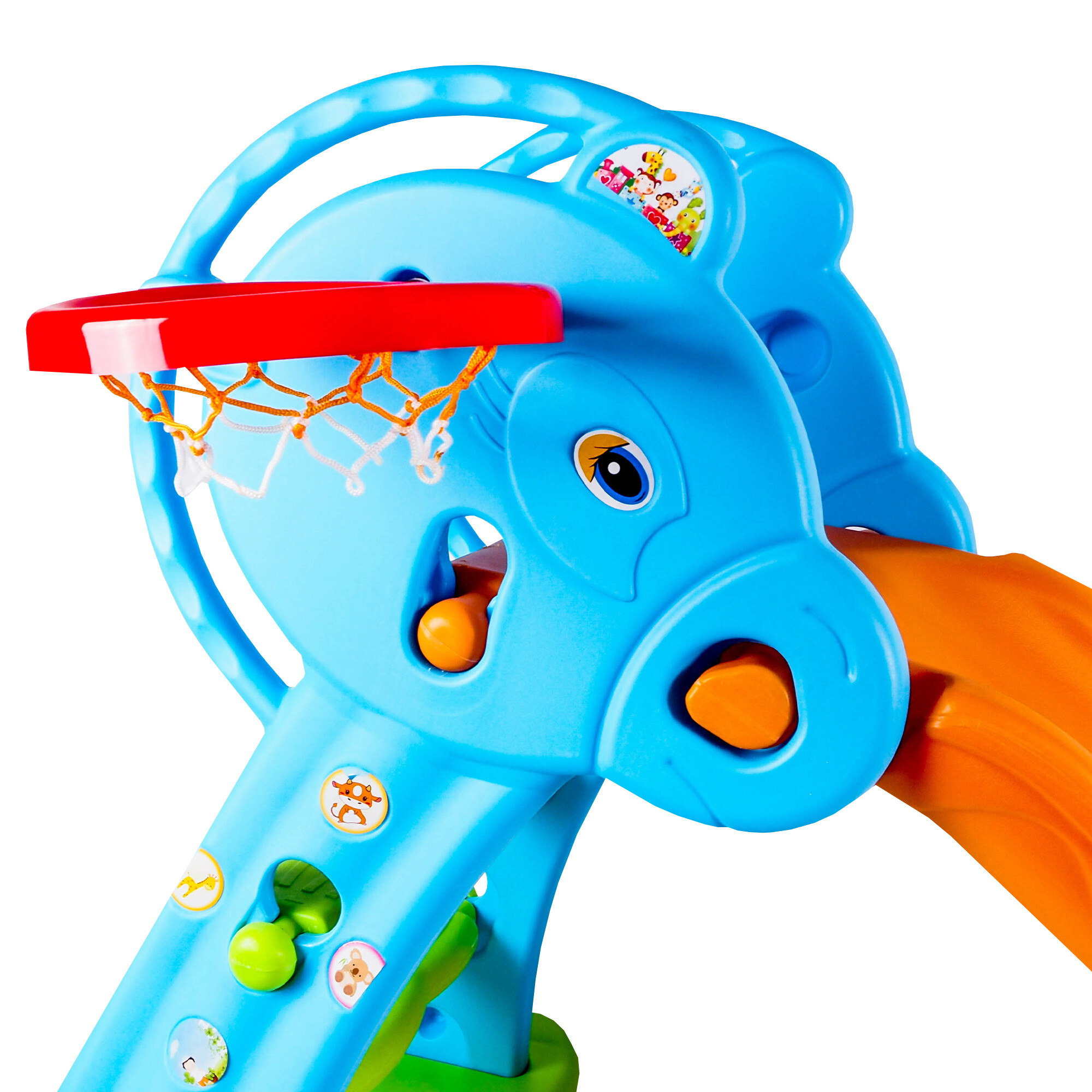 Este echipată și cu un coș de baschet și o minge, oferind astfel copiilor alte posibilități de distracție și mișcare. Copiii se pot juca de-a micul baschetbalist și își pot antrena abilitățile aruncând mingea la coș.