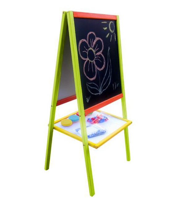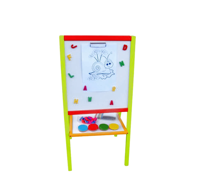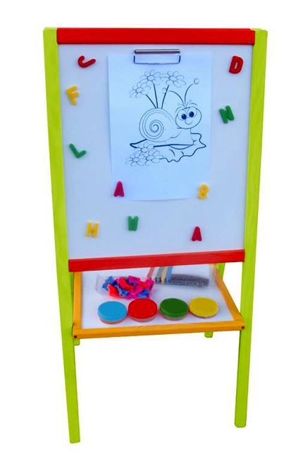 Tablă magnetică dublă pentru copii cu raft de depozitare, cu cadru colorat, de la firma Aga4Kids.