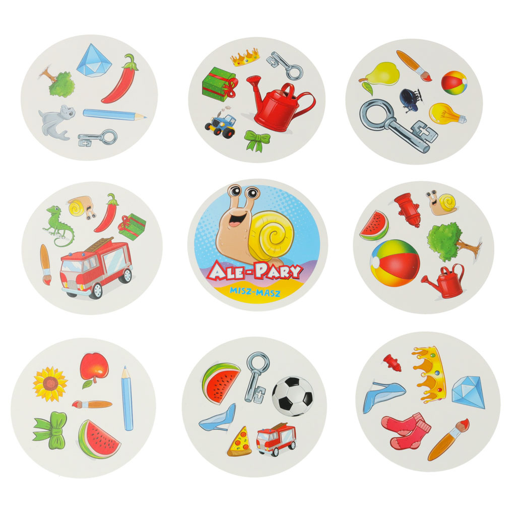 Pachetul conține un set de 31 de cărți cu 6 imagini pe fiecare carte. Oricare două cărți au întotdeauna o imagine comună, dar pentru simplificare, imaginile sunt adesea de dimensiuni diferite. Scopul jocului este să găsești cât mai repede imaginea comună. În funcție de variantă, câștigă cel care obține cele mai multe cărți sau cel care scapă de toate cărțile cât mai repede.