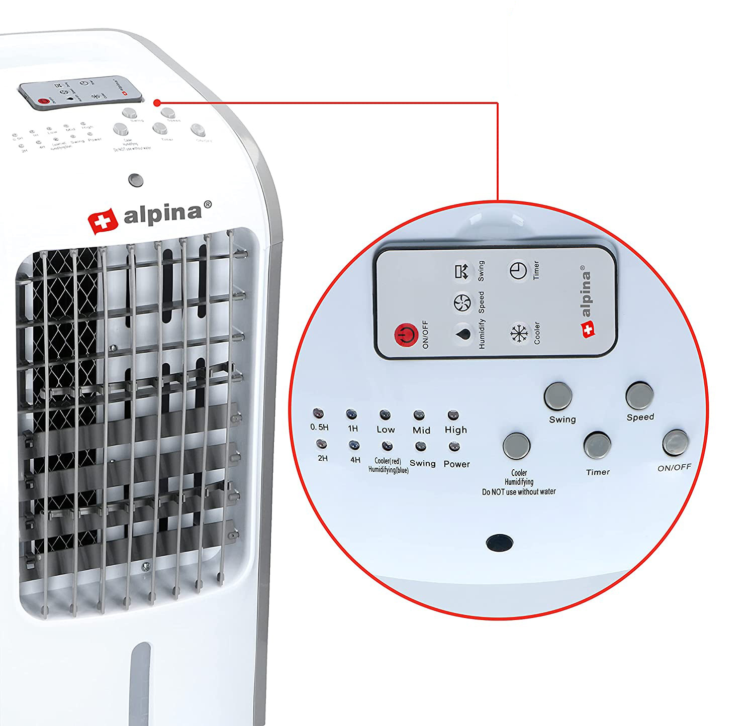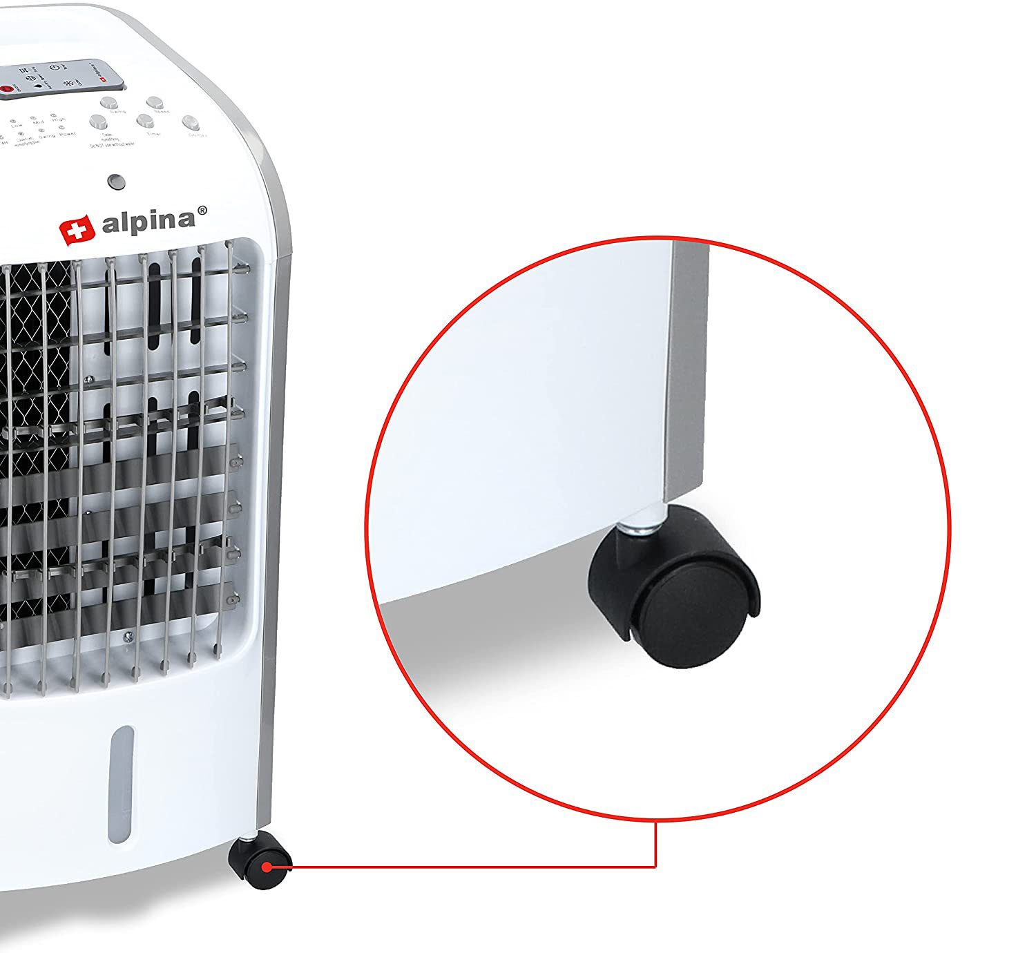 Aparatul multifuncțional Alpina nu doar răcește aerul, ci și îl umidifică. Puteți utiliza umidificarea aerului separat fără răcire sau puteți porni doar ventilatorul.