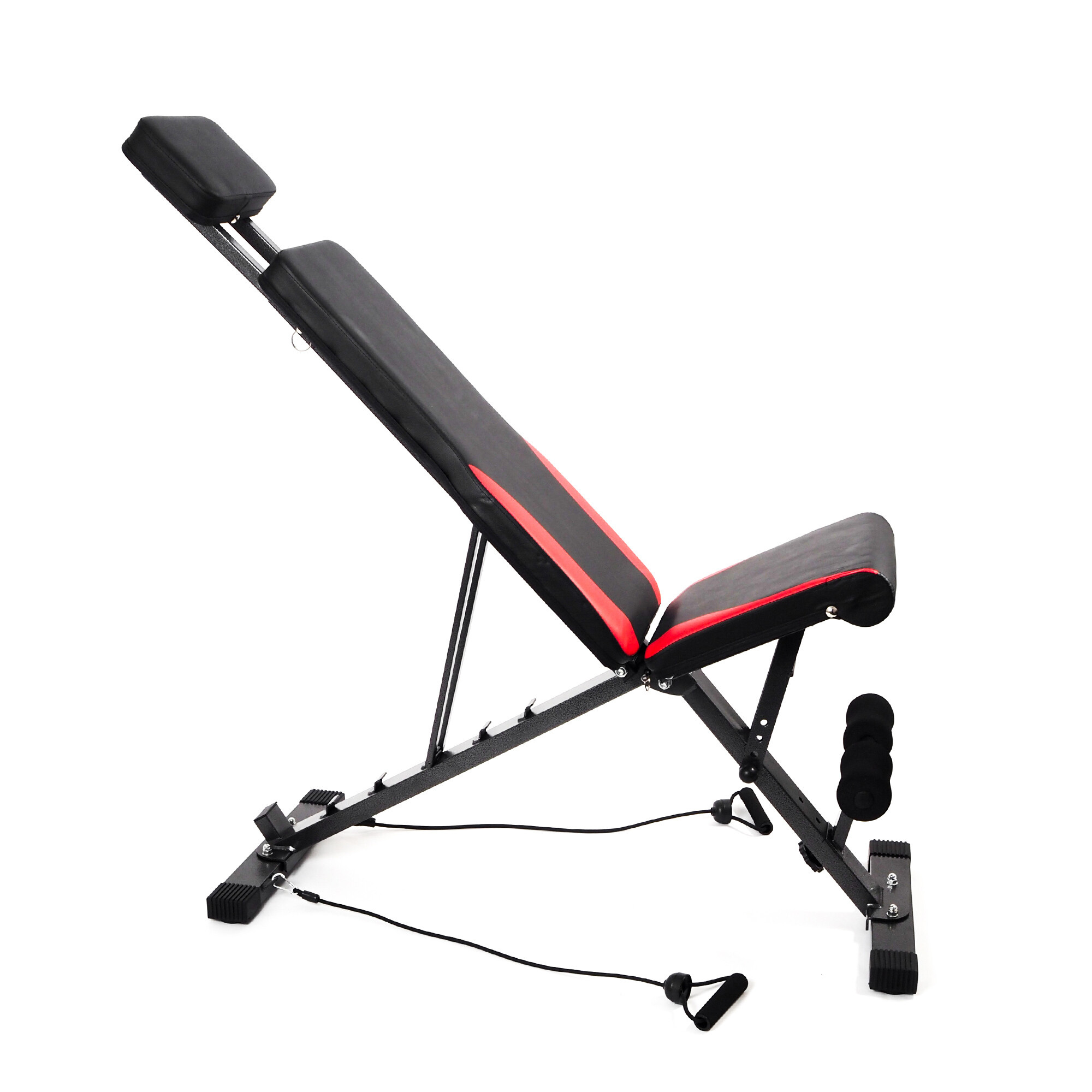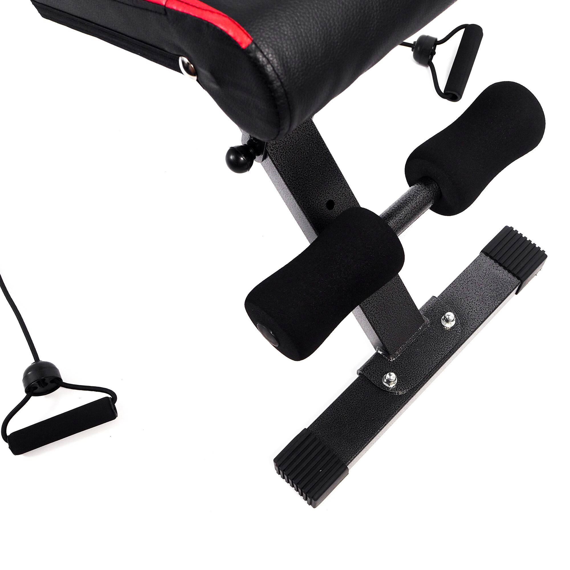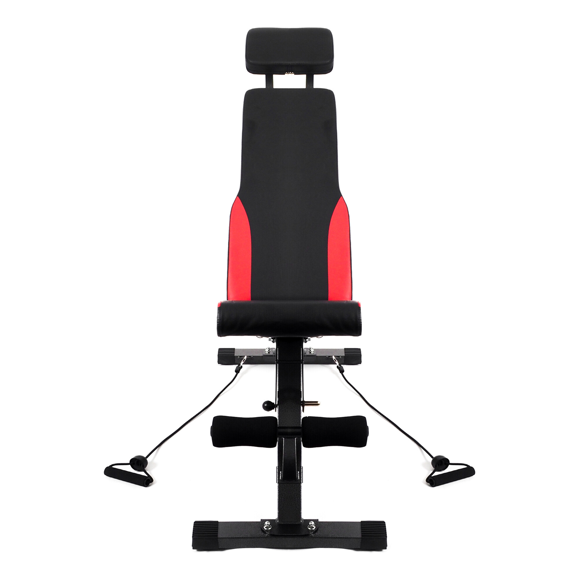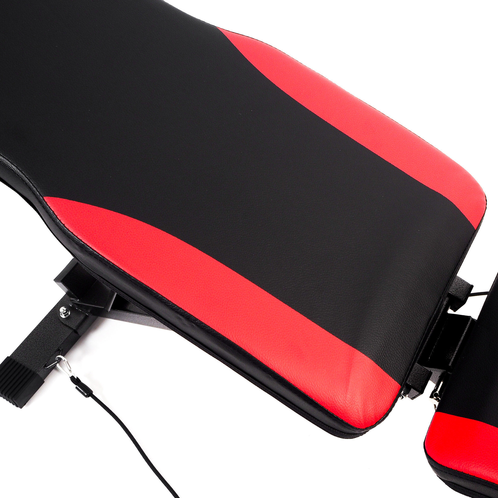 Avantajul băncii este, fără îndoială, setarea sa variabilă. Spătarul poate fi reglat în 6 unghiuri diferite, partea de șezut în patru, suportul pentru picioare dispune de trei poziții, iar tetiera poate fi extinsă cu până la 10 cm. Acest lucru vă garantează un antrenament foarte diversificat.