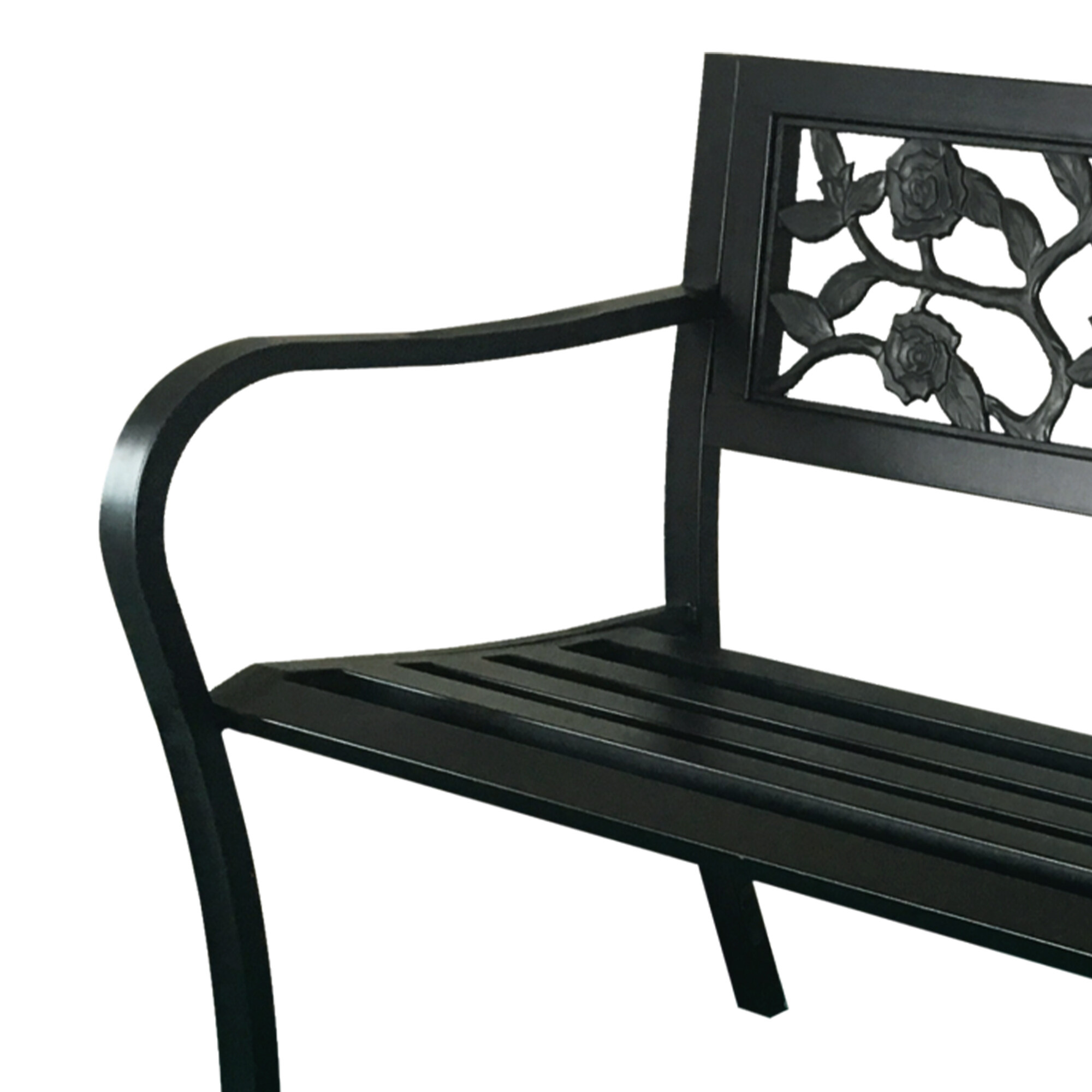 Construcția băncii de grădină este realizată din oțel și fontă, aceste materiale sunt rezistente și, în același timp, asigură stabilitatea. Construcția băncii este prevăzută cu un finisaj de vopsire în câmp electrostatic, astfel încât banca rezistă excelent la intemperii și are o durată de viață lungă.