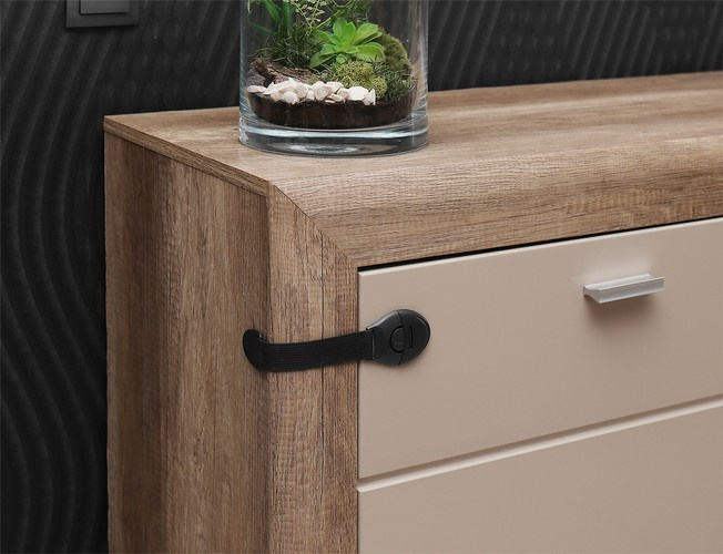 Blocarea sertarului a fost proiectată astfel încât să permită unui adult accesul fără probleme la conținutul mobilierului, fără a fi nevoie să îndepărteze protecția. Este suficient să apăsați protecția în locul potrivit și clema se va deschide. După scoaterea accesoriilor necesare din dulap / sertar, este suficient să închideți încuietoarea sertarului și acesta își îndeplinește din nou funcția. Protecția dulapului este foarte estetică - montată pe mobilier deschis la culoare nu atrage atenția.