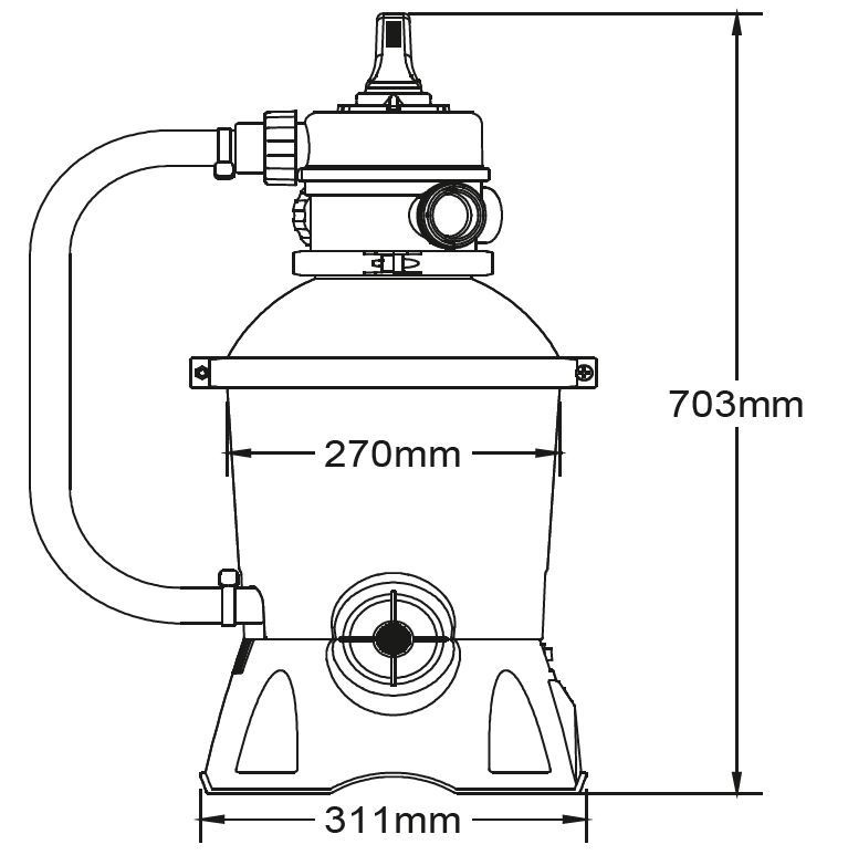 Recipientul de filtrare este conectat la pompă printr-un furtun flexibil. Cantitatea de nisip din recipientul filtrant este de 8,5 kg.