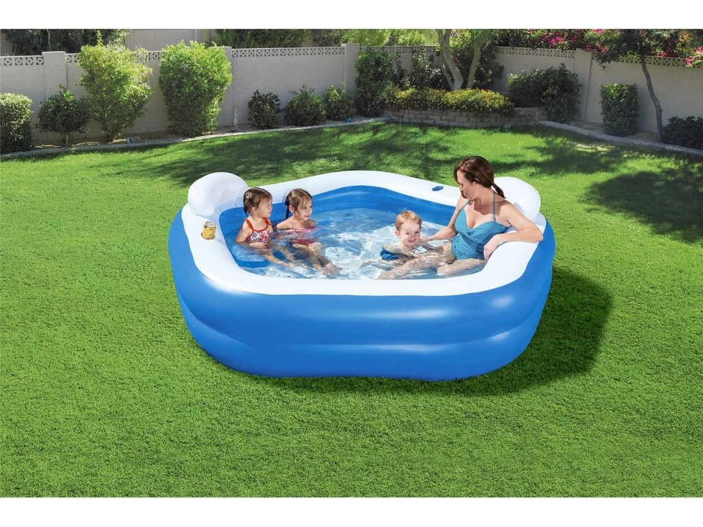 Piscina de grădină pentru copii Family Fun, de la firma italiană Bestway, este fabricată din PVC durabil și sigur pentru sănătate.