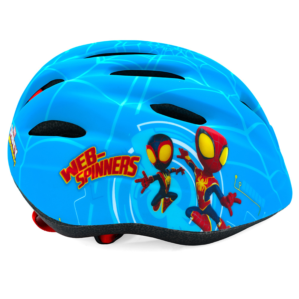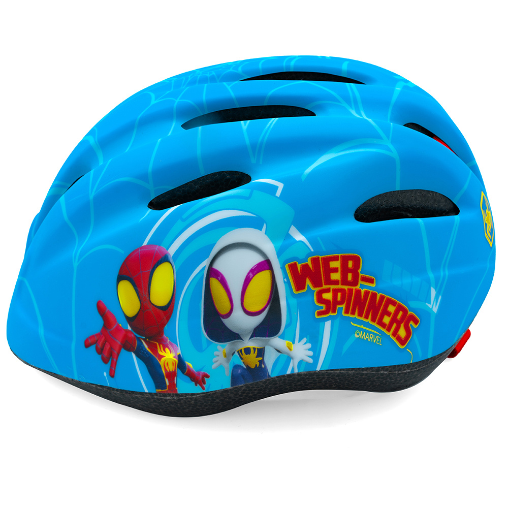 Bezpečná, vysoce kvalitní helma navržená pro nejmladší jezdce. Dobře se hodí při učení dítěte jezdit na kole a jiných vozidlech. Poskytne pohodlí, když dítě cestuje v sedačce na vašem kole. Vnější helma je vyrobena z matného PVC a zdobena postavami ze SPIDEY. Uvnitř je vyrobeno z černé pěny EPS pohlcující nárazy. Helma je vybavena nastavovacím knoflíkem pro přizpůsobení helmy hlavě dítěte, popruhy na obou stranách se zapínají pod bradou pomocí přezky s měkkou podložkou. V plášti helmy je 12 ventilačních otvorů.