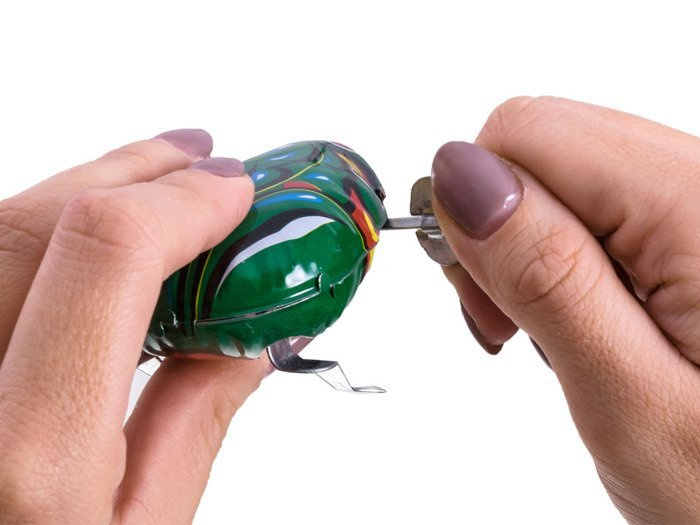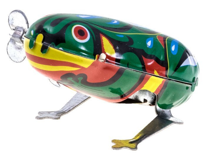 Broasca pe cheie este destinată copiilor. O jucărie ca pe vremuri, fabricată din metal într-o frumoasă culoare verde și înșurubată cu o cheie. Mișcarea broaștei de tablă este asigurată de un mecanism cu arc fixat cu ajutorul unei chei.