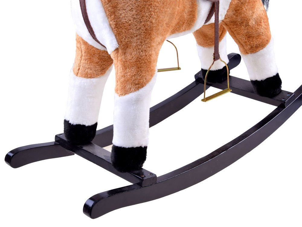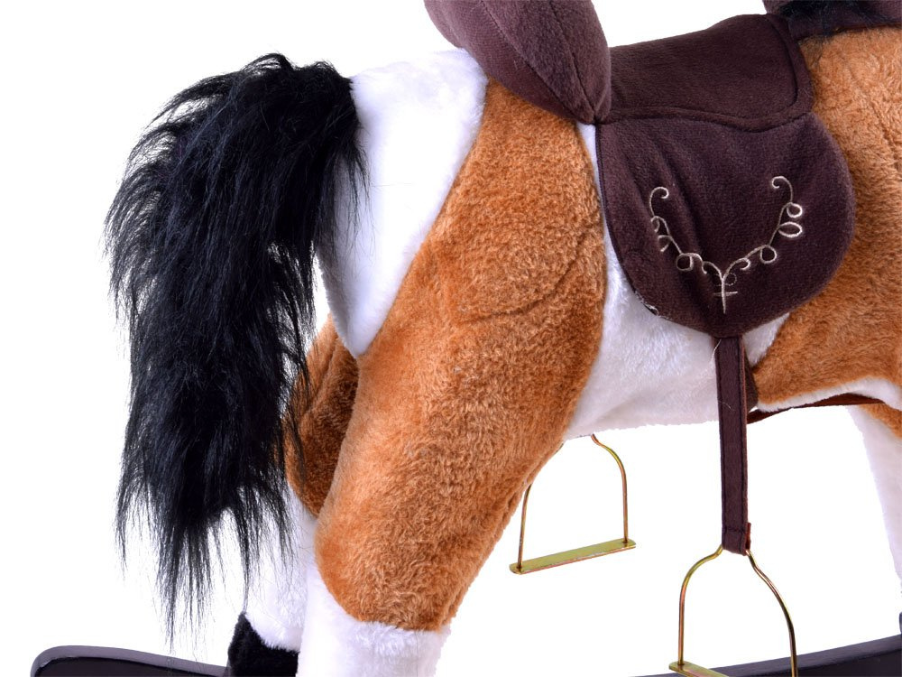 Pe urechea dreaptă și stângă a calului sunt butoane care, la atingere, declanșează sunetul de nechezat, galop, calul începe să miște botul și să dea din coadă. Calul este fabricat din pluș moale. Are mânere din lemn, frâie și o șa modelată cu scărițe.