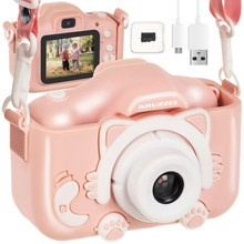 CAMERĂ FULL HD ROZ PENTRU COPII + CARD 32GB + CAT OVER + JOCURI INCORPORATE + CAMERĂ SELFIE