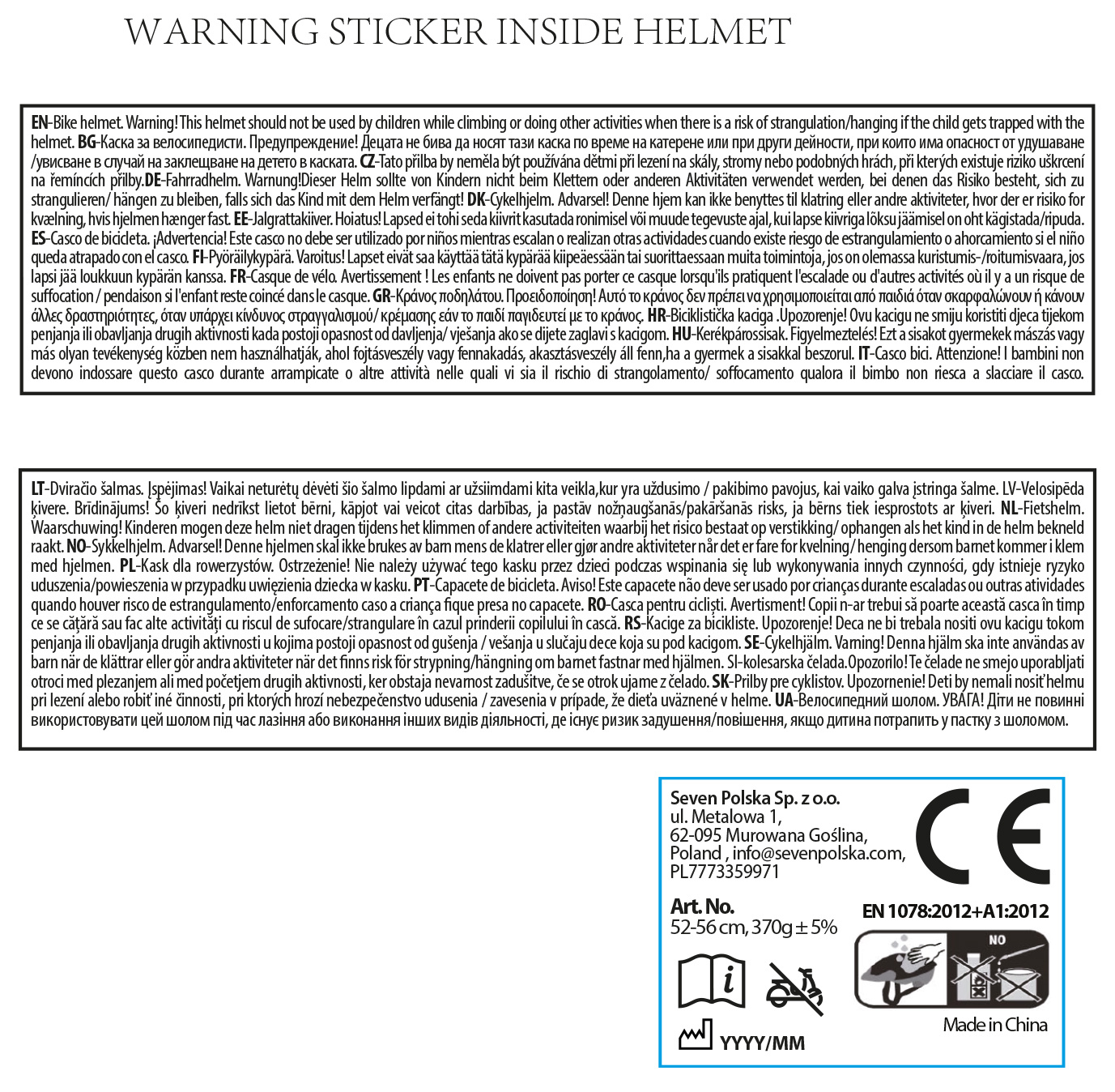 Atenție! Această cască nu ar trebui să fie folosită de copii în timpul cățărării sau altor activități în care există riscul de strangulare/ștrangulare, dacă copilul se agață cu casca.