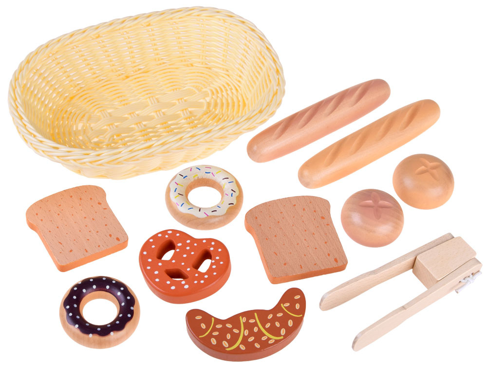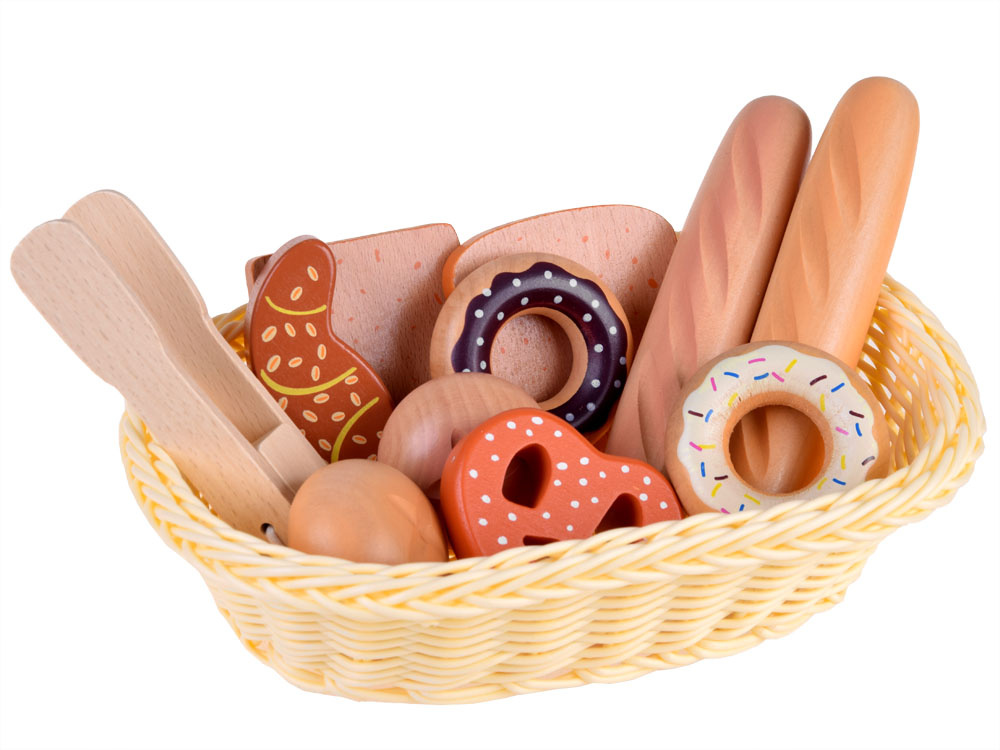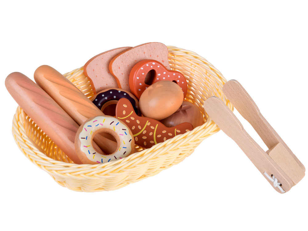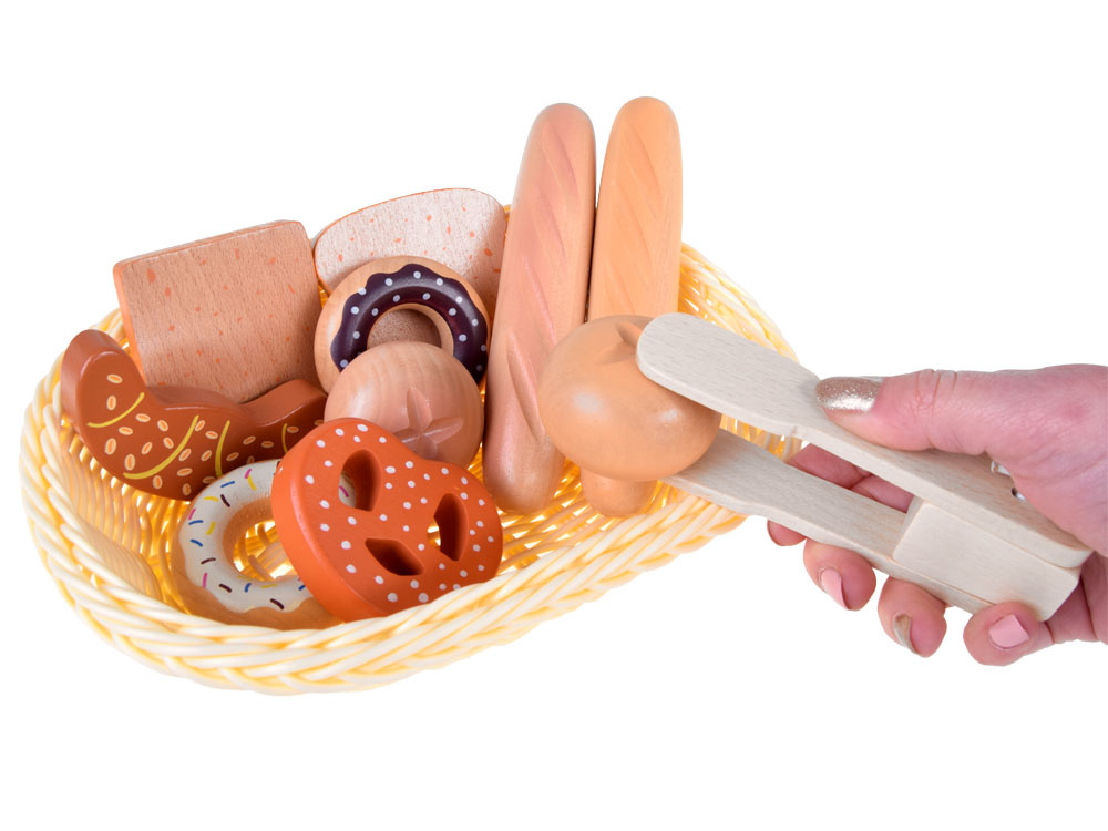 Coșul pentru pâine este un produs din lemn, care permite fiecărui copil să pregătească un mic dejun delicios pentru păpuși, ursuleți și alți copii înfometați.