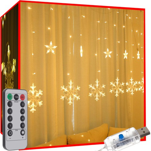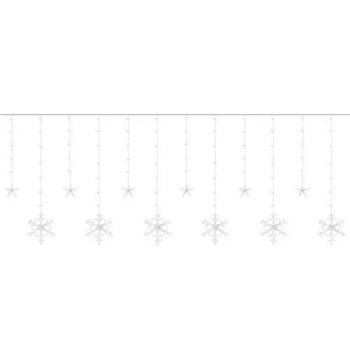 Lumina în formă de stea arată extraordinar de bine. Cortina luminoasă LED strălucește cu o lumină puternică și creează o atmosferă confortabilă în fiecare cameră. La utilizarea în exterior (de exemplu, pe terasă sau balcon) arată foarte decorativ.